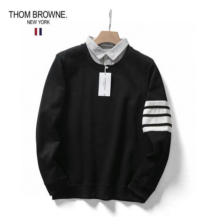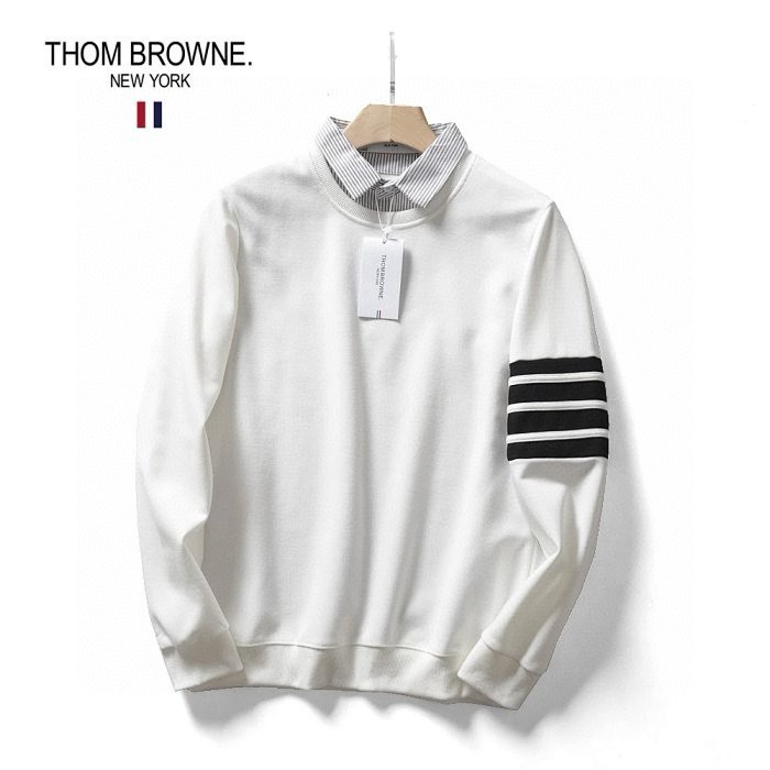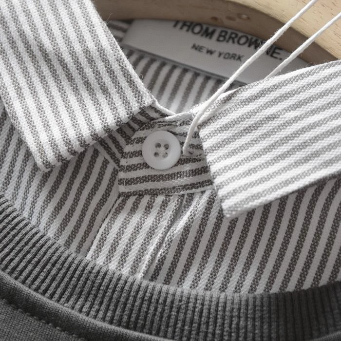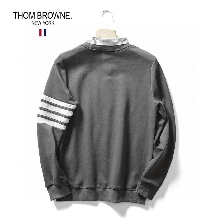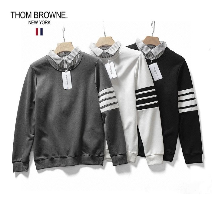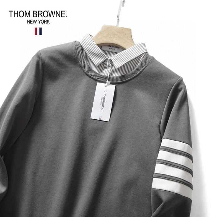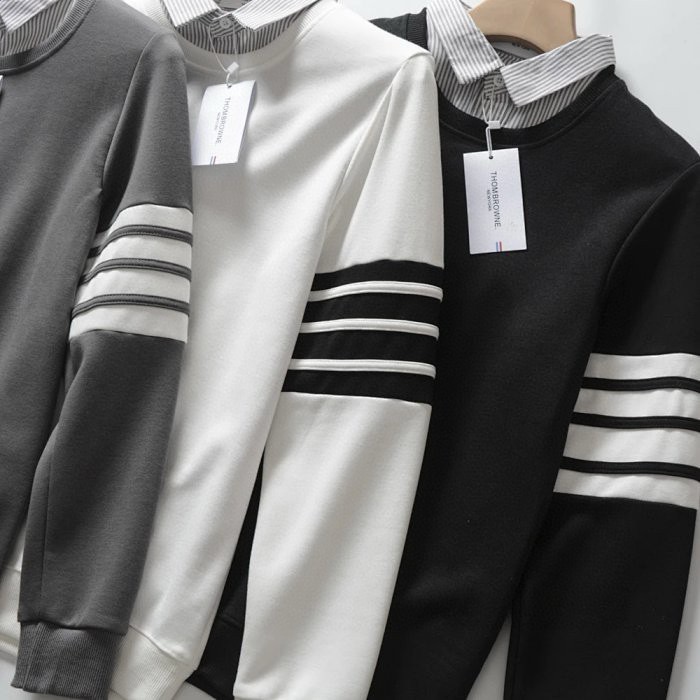 秋季新款T汤姆布朗经典情侣款四道杠衬衫领假两件套头卫衣外套,