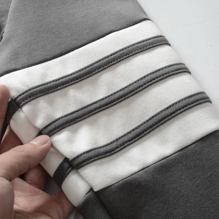 TB汤姆布朗的经典之作、简约时尚,四季常青款,这款上衣可谓经典之作没有太多的花头标志性的四杠设计,袖口,底边,都是螺纹拼接,纯棉320毛圈,整衣重量上手便知,手感亲肤细腻,非常柔软!绝对不是市面上普通货,非常有质感和厚实感,不变形!走线工整有序,无杂线!男女均可搭配。