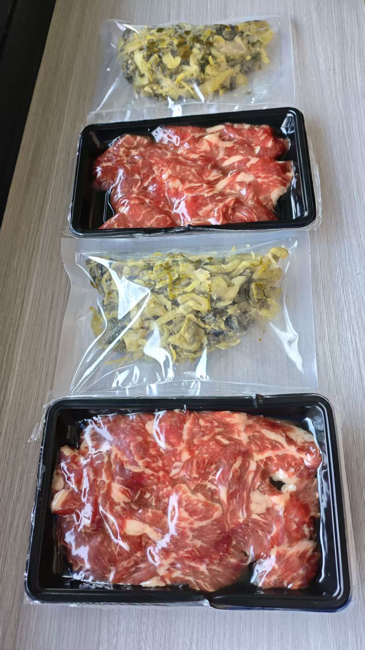 【牛肉酸菜】牛肉采用俄罗斯三角肉150g腌制底味,酸菜是同诺热销南方鱼酸菜(建议做法:中式牛肉炒酸菜;酸菜牛肉米线)