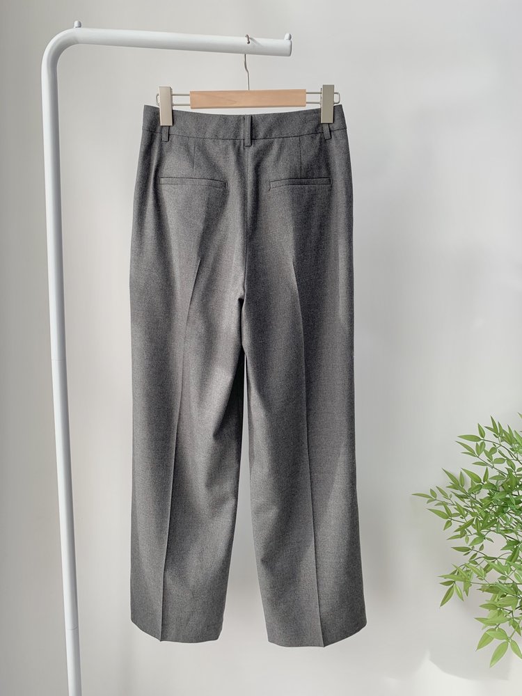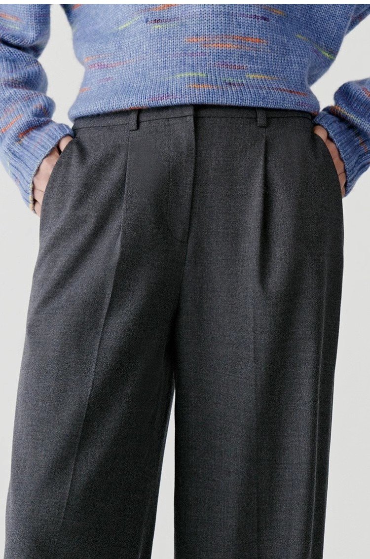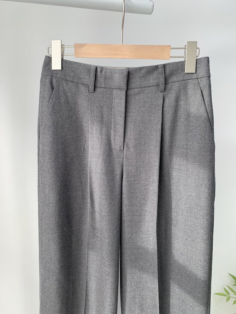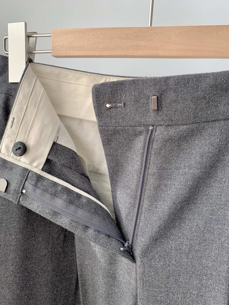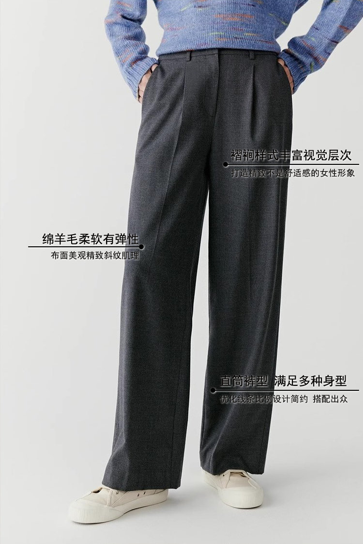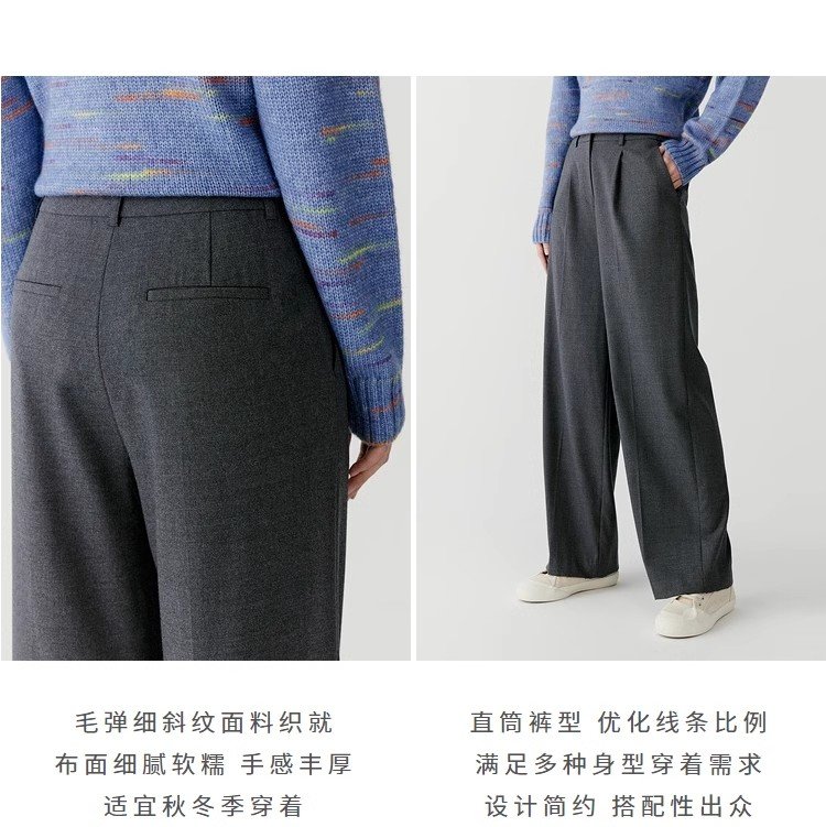 花灰双褶长裤 毛弹细斜纹直筒西裤 面料柔软富有弹性 细斜纹面料 初剪澳毛高密织造手感软糯丰厚 双褶立体设计