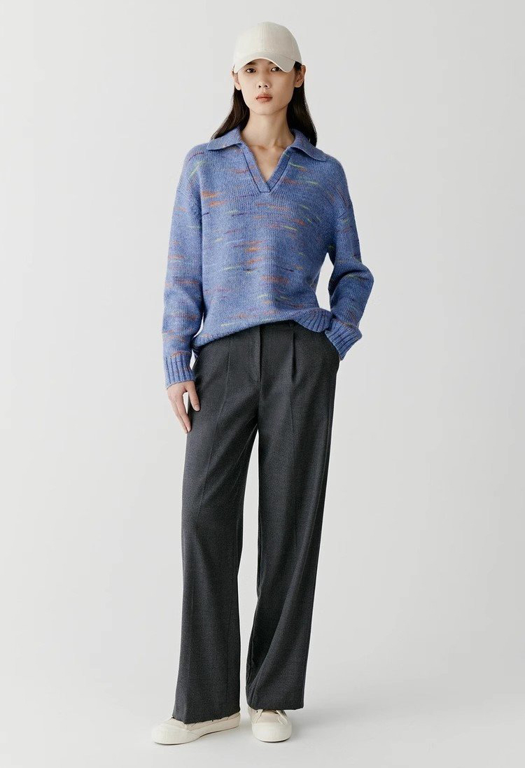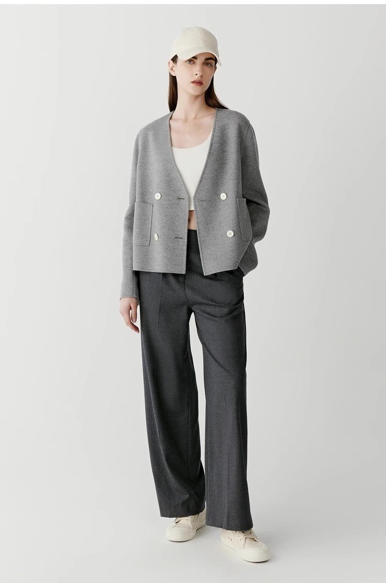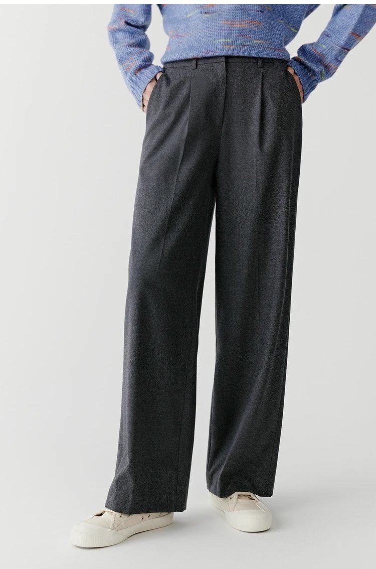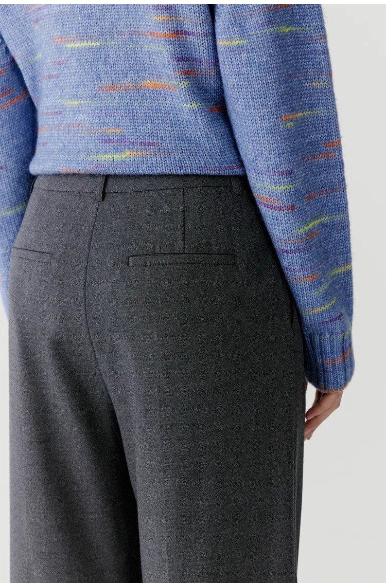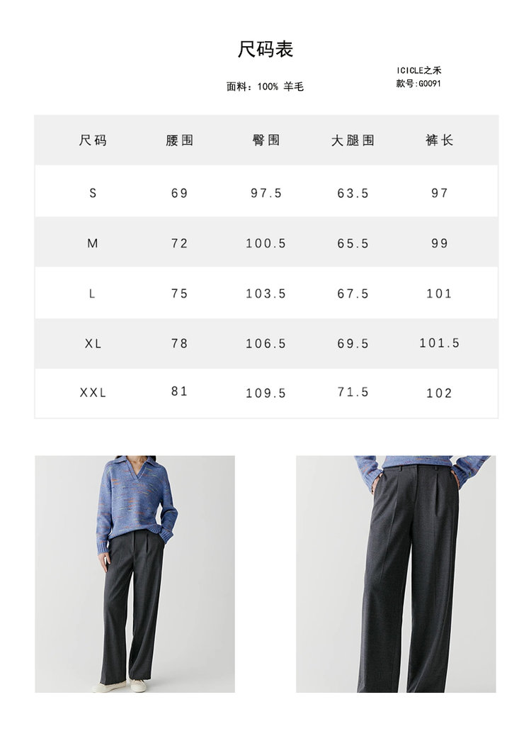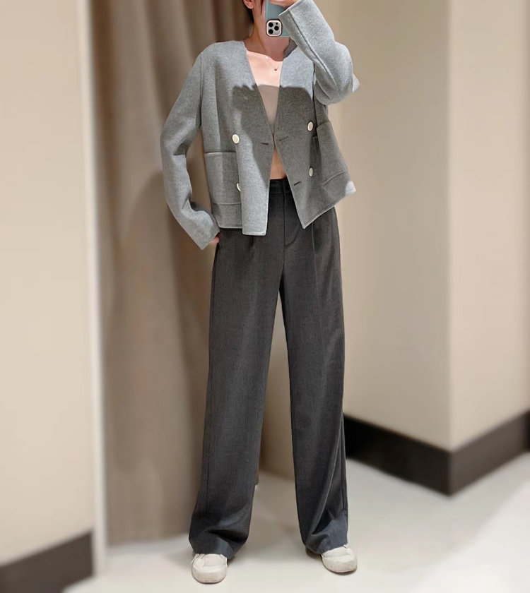 花灰双褶长裤 毛弹细斜纹直筒西裤 面料柔软富有弹性 细斜纹面料 初剪澳毛高密织造手感软糯丰厚 双褶立体设计
