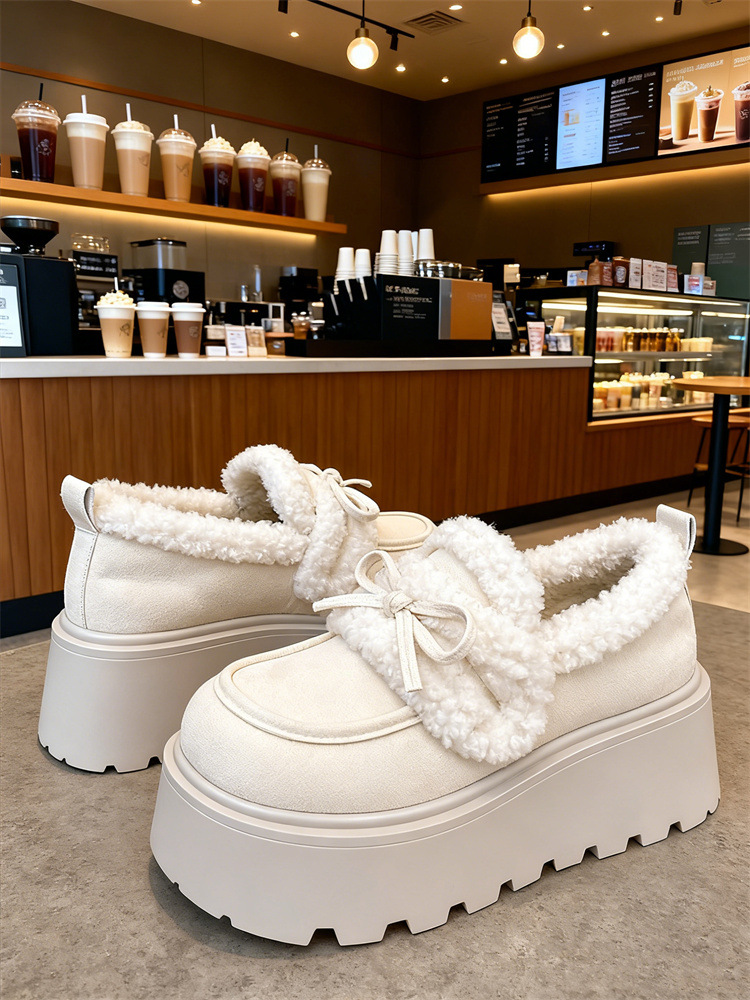 【升级版❗️复古勃肯鞋】修饰腿型,显高显瘦,穿出大长腿,更柔软,脚感更舒适,2025新款冬季保暖白色毛毛厚底棉鞋女QQ
