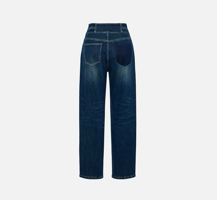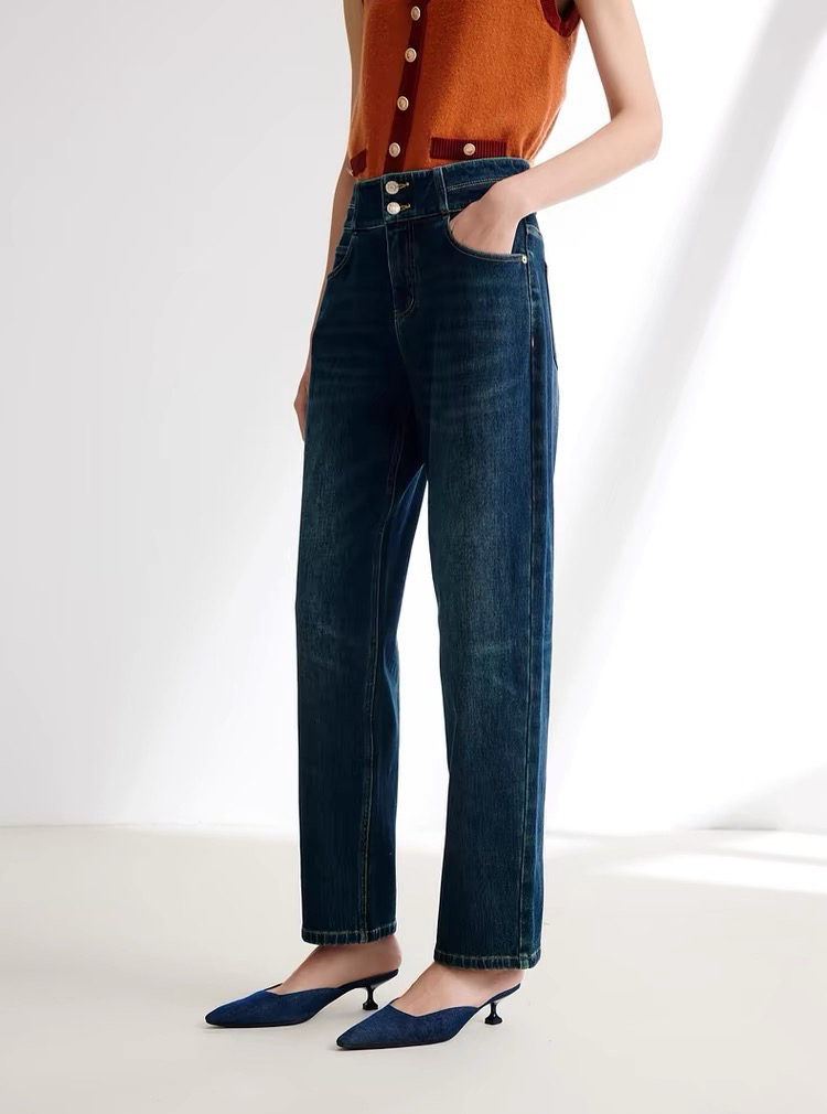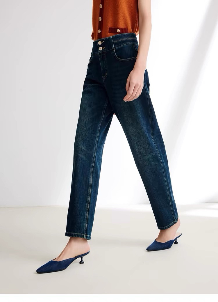 雅莹 蓝色两扣 拉绒牛仔裤 磨毛牛仔裤