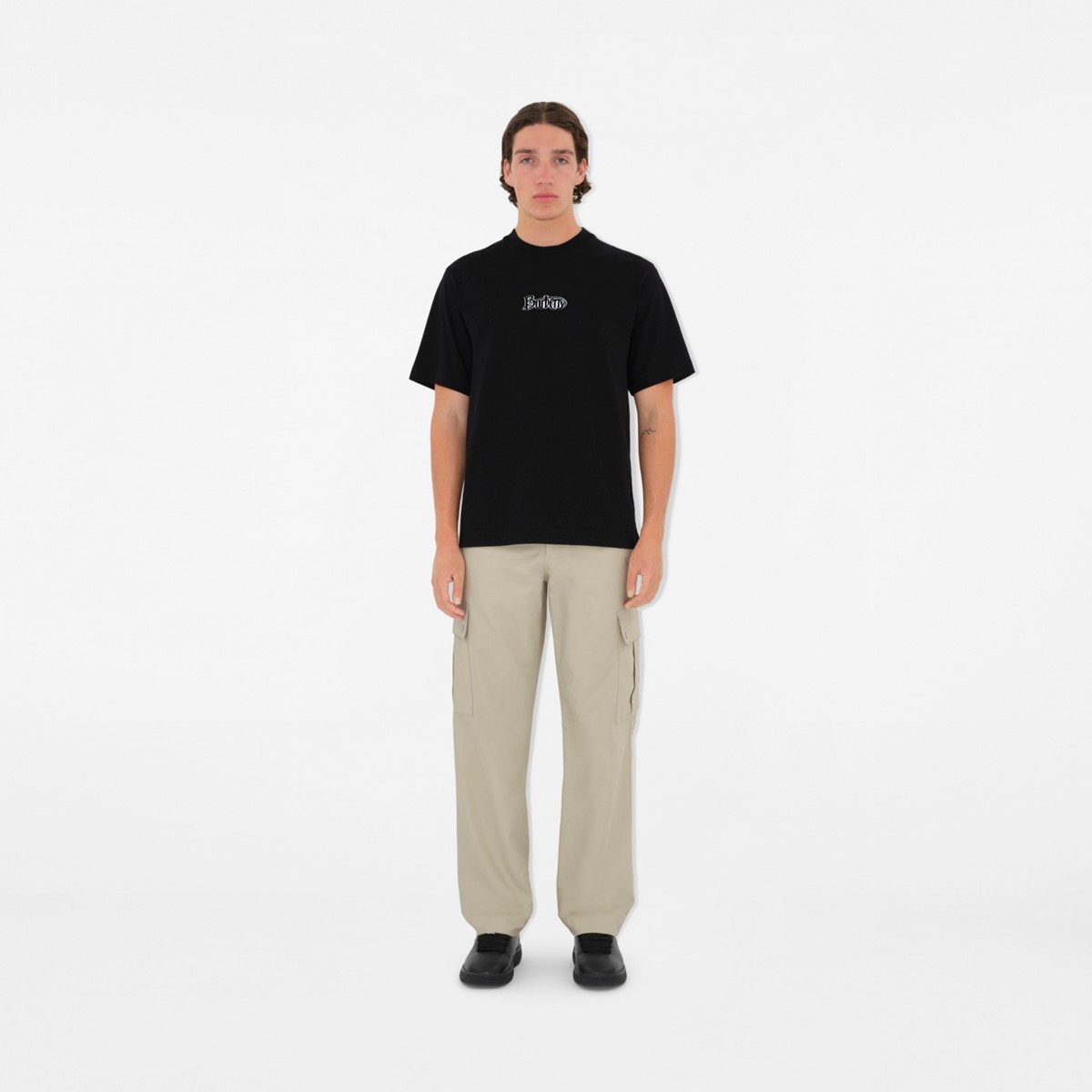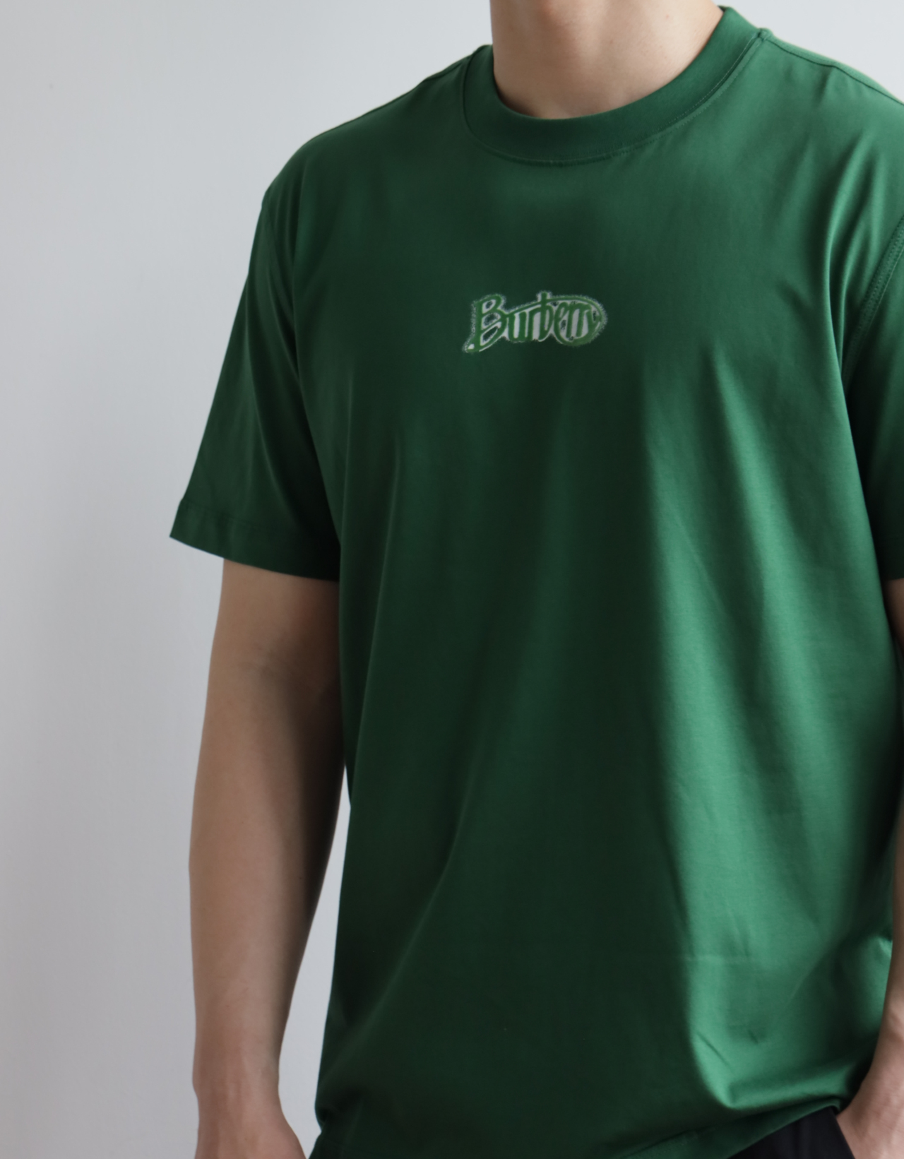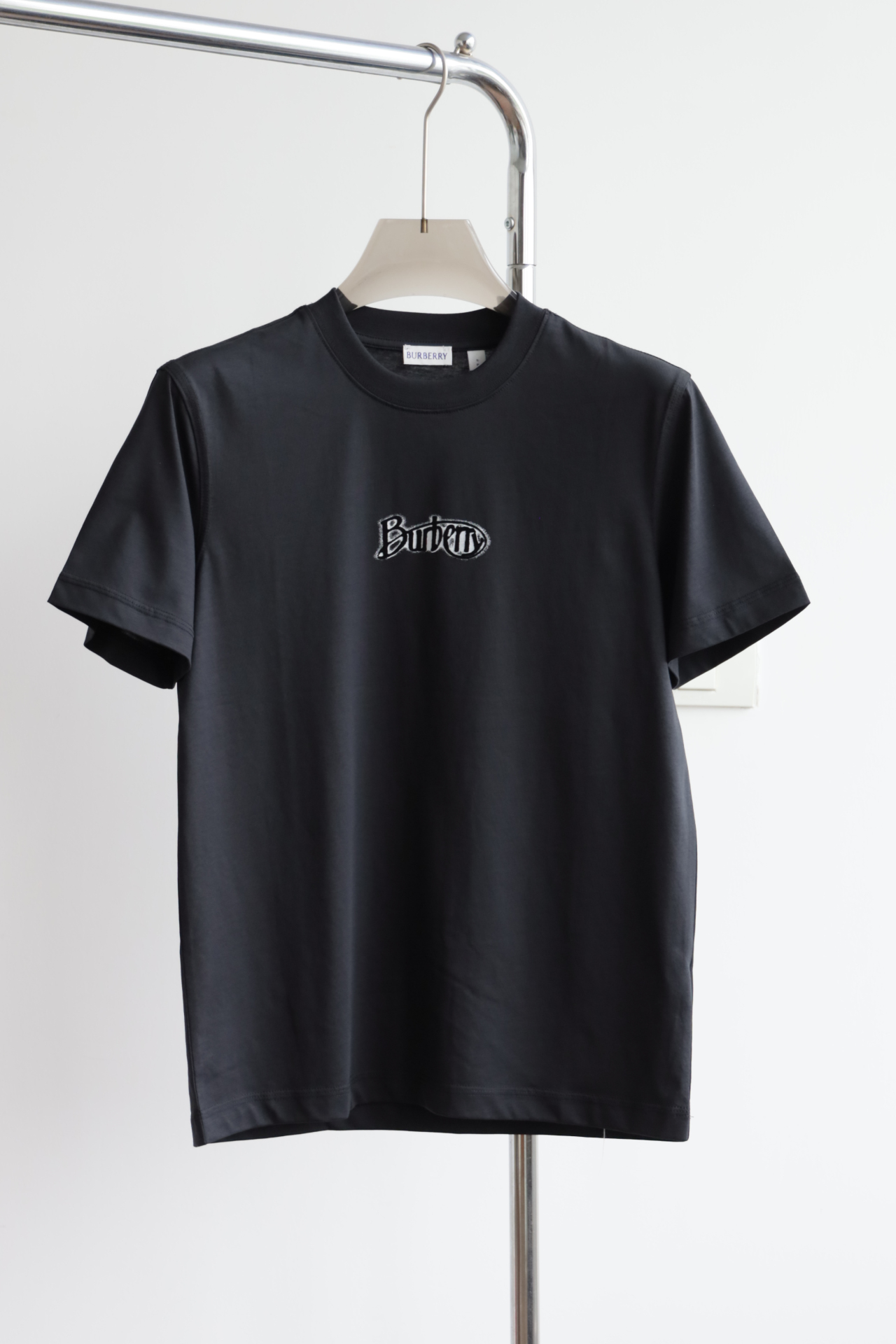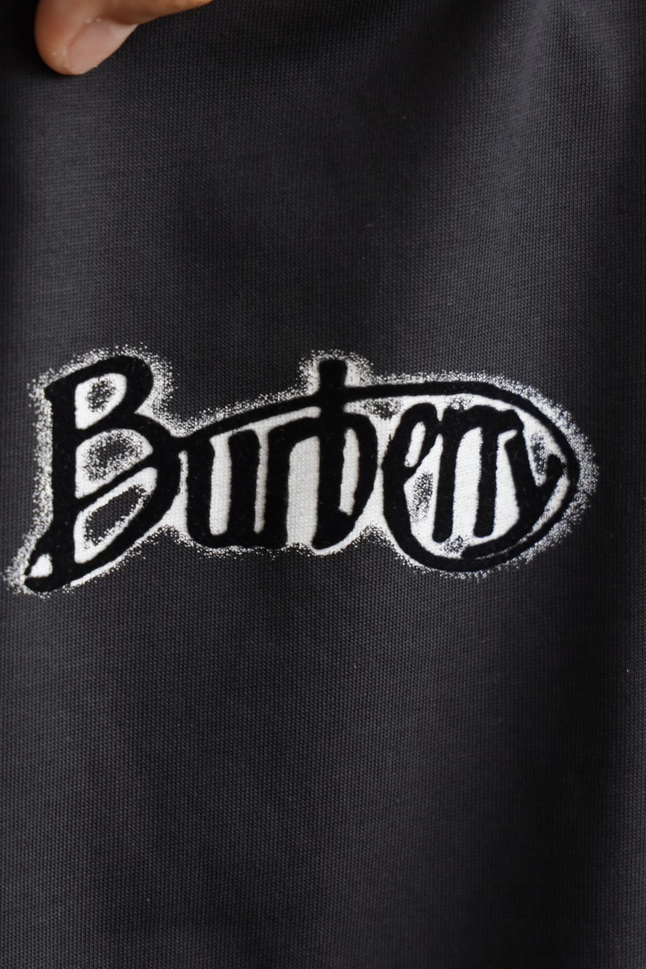 B.B. 丝光平纹 植绒字母印花 圆领短袖T恤