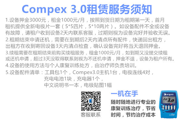 为了能让广大用户能随时随地进行专业的康复训练治疗,节省时间,节约治疗成本,特此提供Compex租赁服务