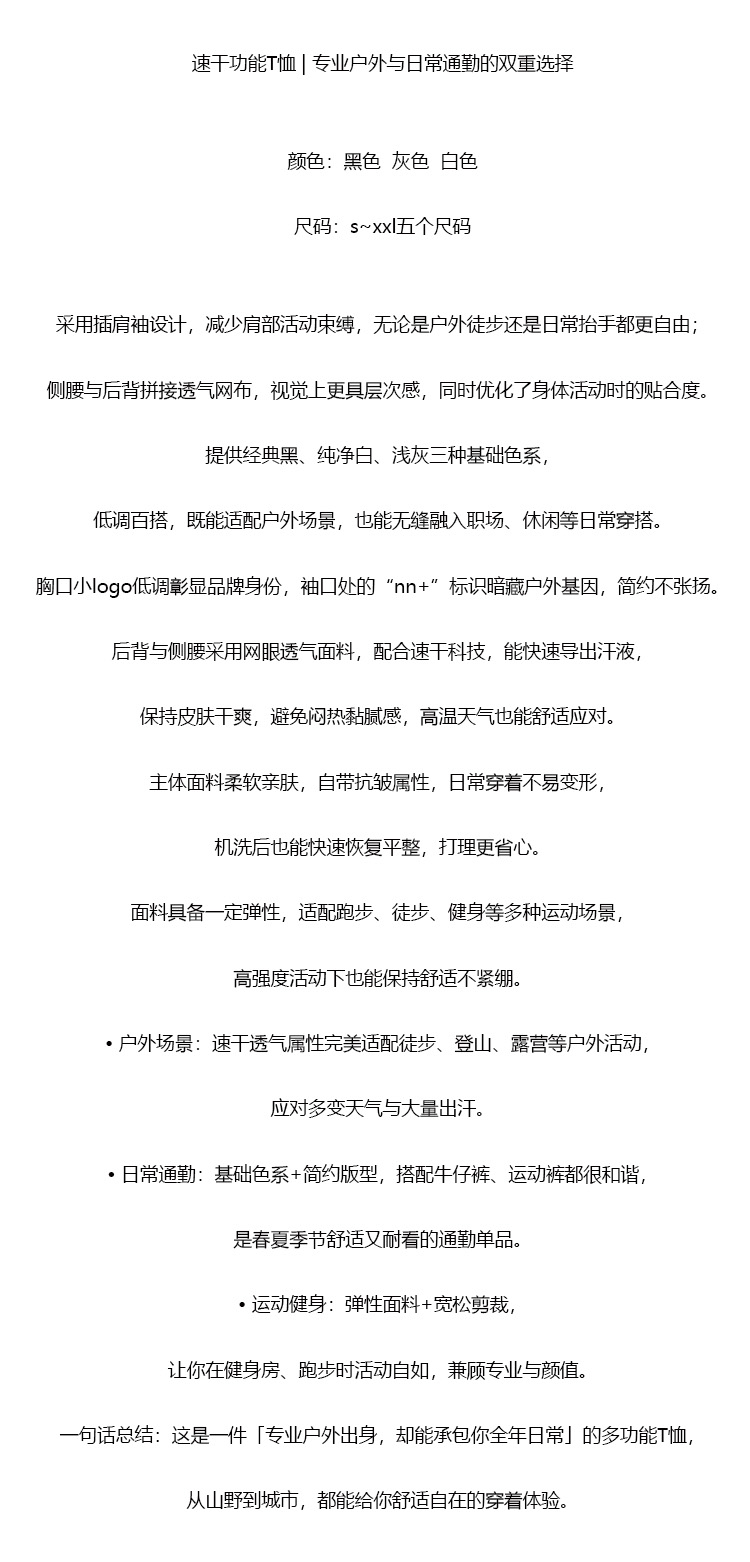 【ss1】男子户外通勤速干功能短袖T恤 !!