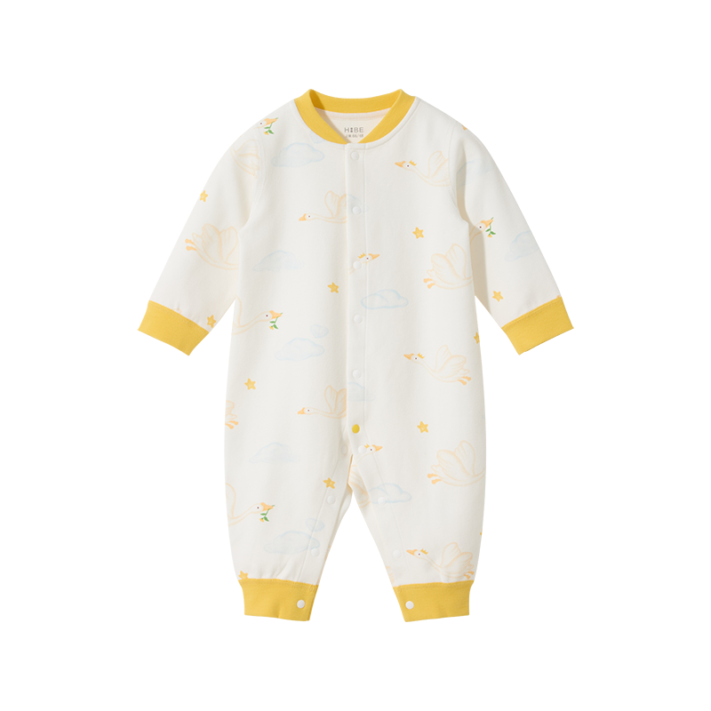 怡比小天鹅之家长袖开襟哈衣HY25AUN019白黄色调59#-80#