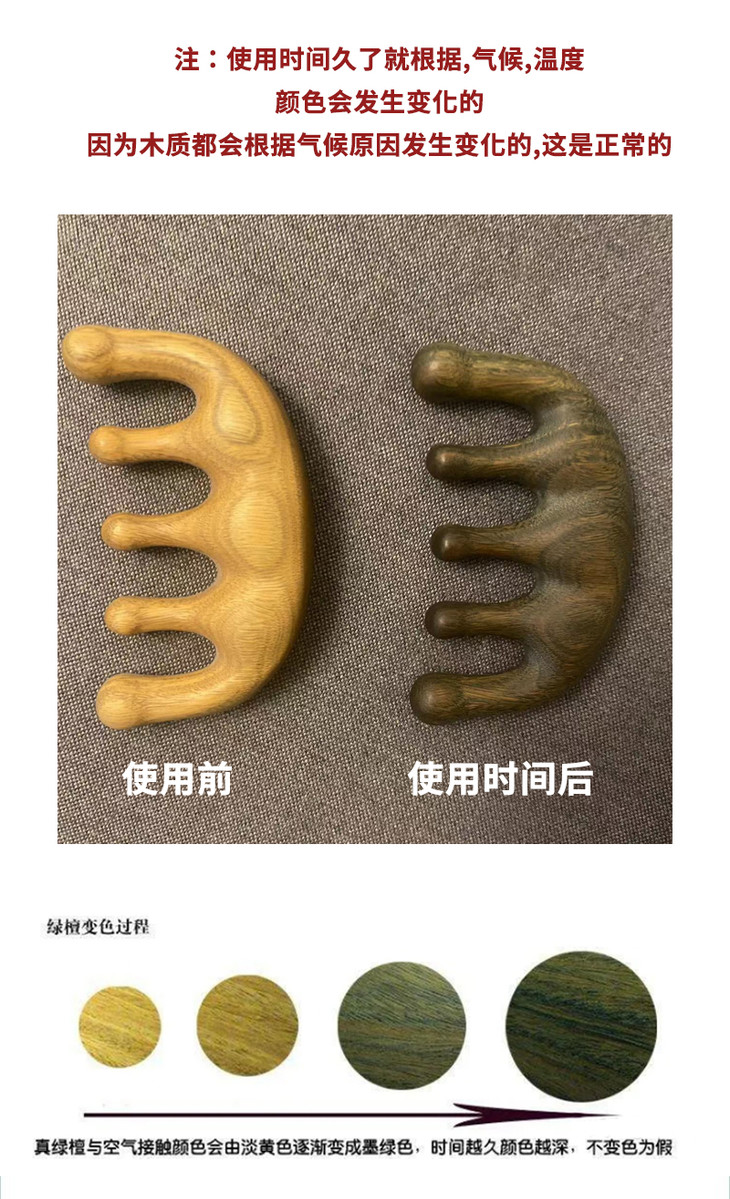 绿檀木经络按摩梳 孙俪同款 头皮脸部头疗小梳子宽大五齿女刮痧梳