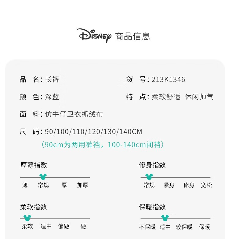 迪士尼童装 秋冬新品儿童抓绒保暖休闲裤男女童长裤223K1346