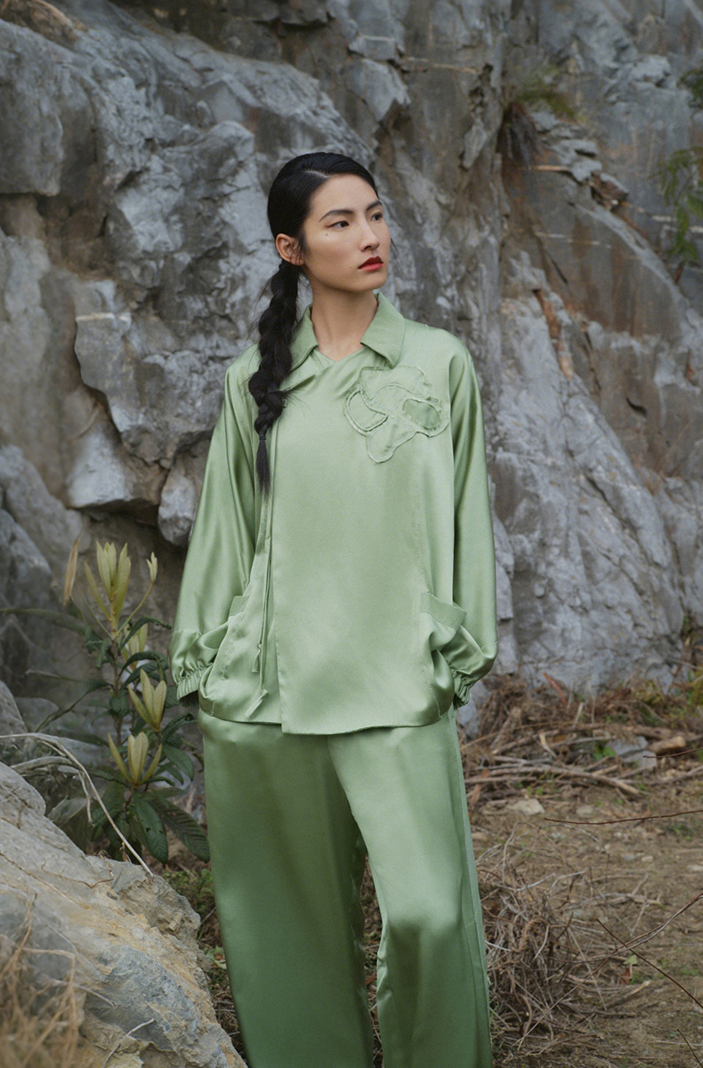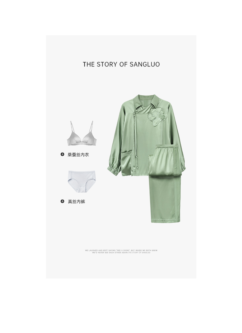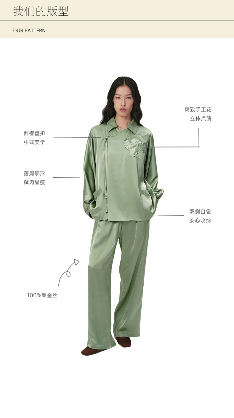 高定芳华』桑罗23姆米重磅国风睡衣套装桑蚕丝女家居服