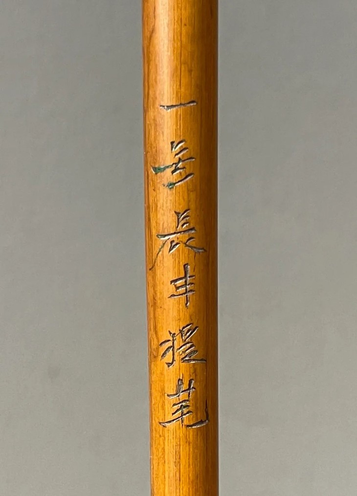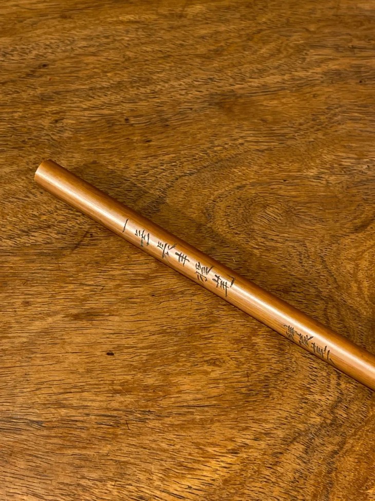 此狼毫牛角竹杆大楷毛笔,除边沿细微裂痕与磨损痕外,整器保存完好无损,表面包浆皮壳温润细腻。
