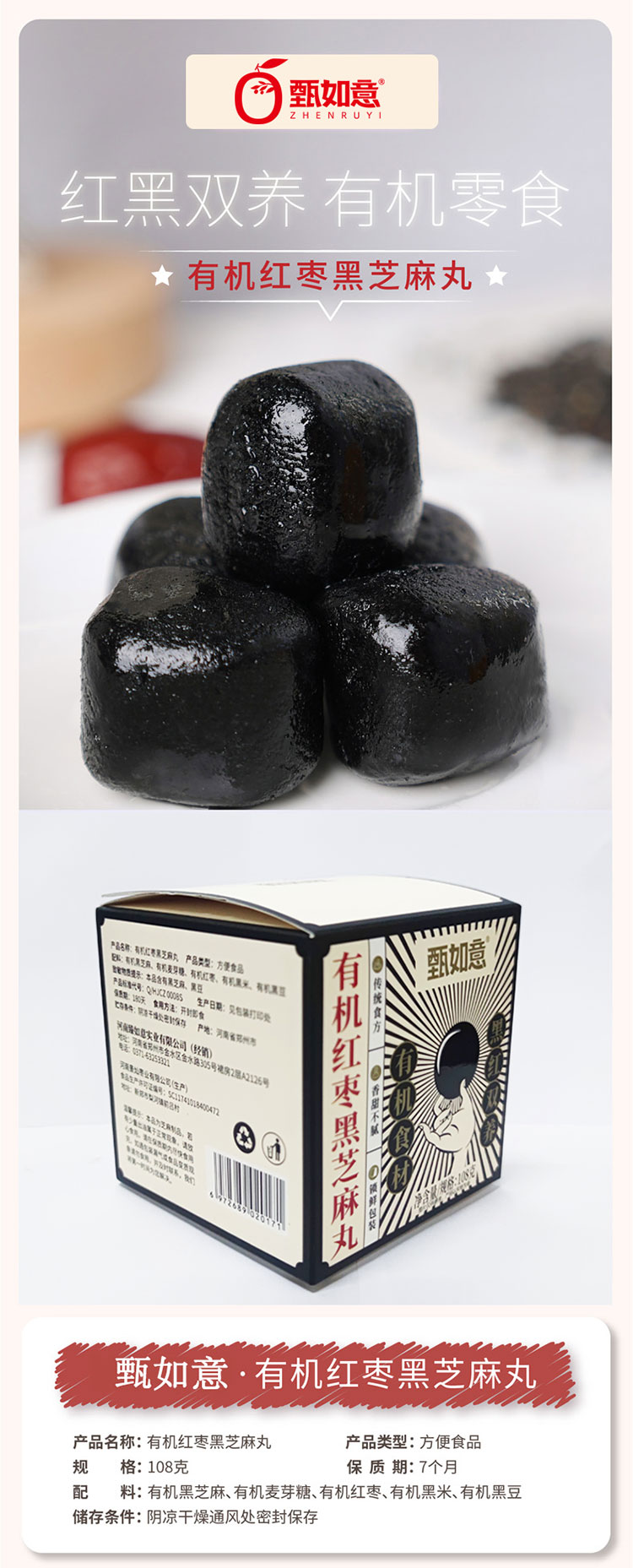 【厂商直发】有机红枣黑芝麻丸108g盒装无香精色素健康零食麻球即食甜糯