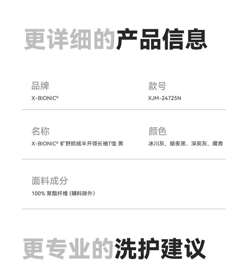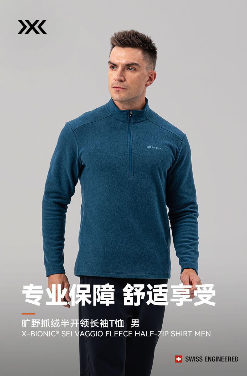 X-BIONIC 旷野抓绒半开领长袖T恤 男秋冬保暖透汽轻量徒步中间层XJM-24725N