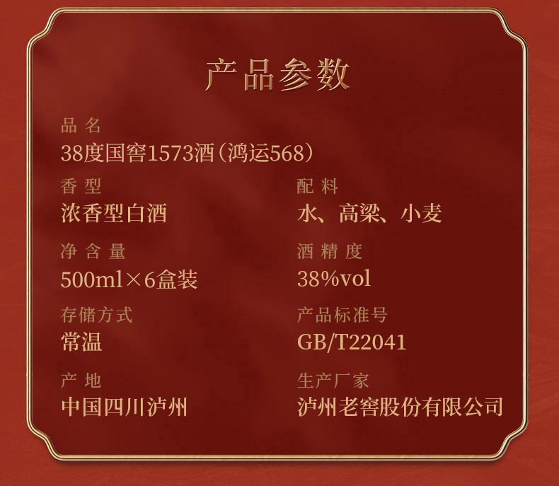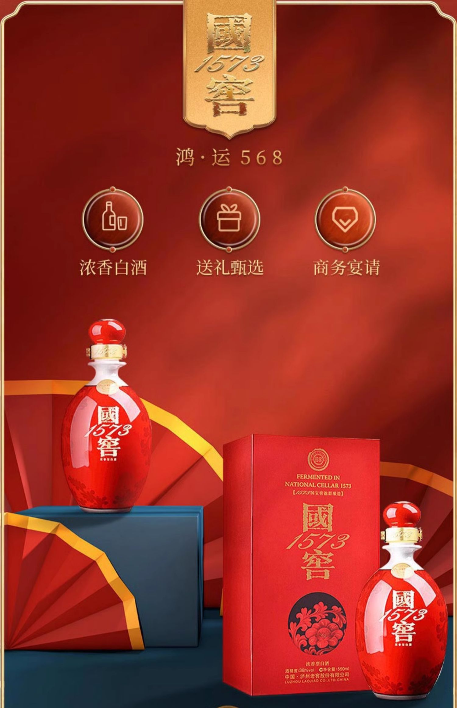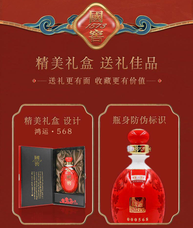 【酒厂直营】国窖1573酒 鸿运568 38度 500ml 泸州老窖官方旗舰店