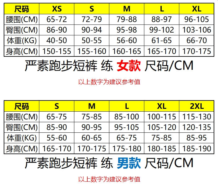 男/女训练款