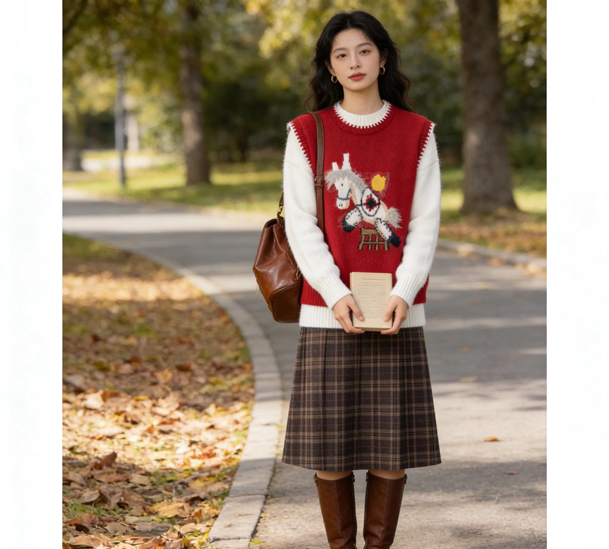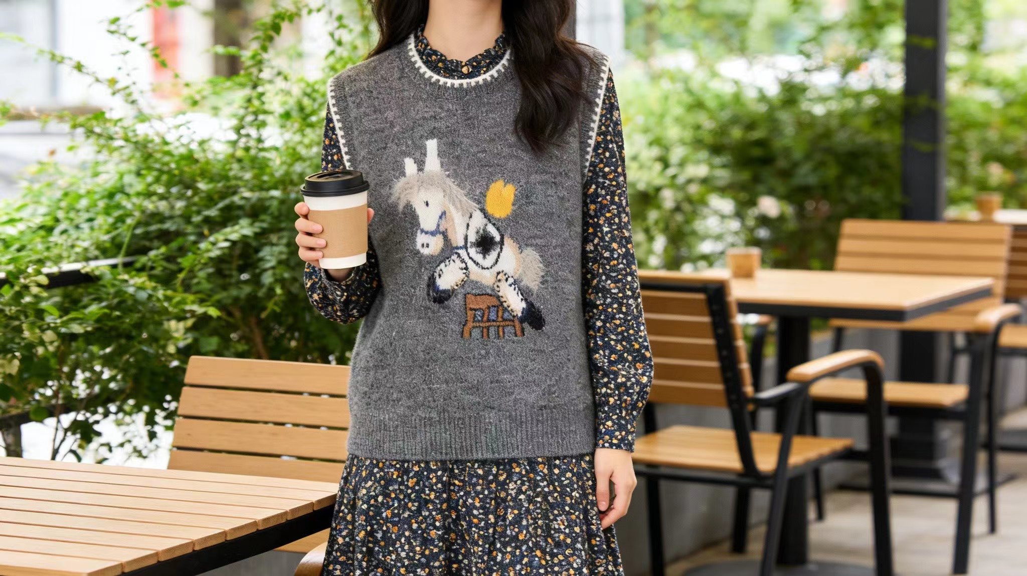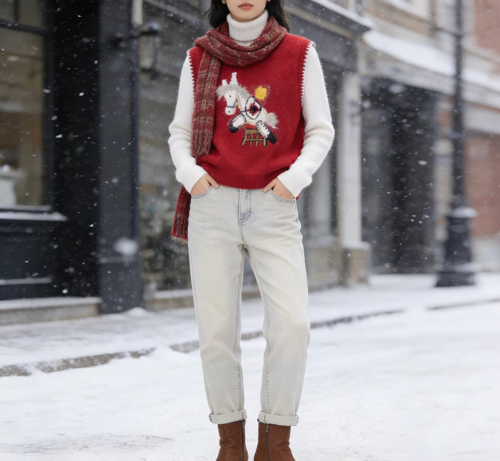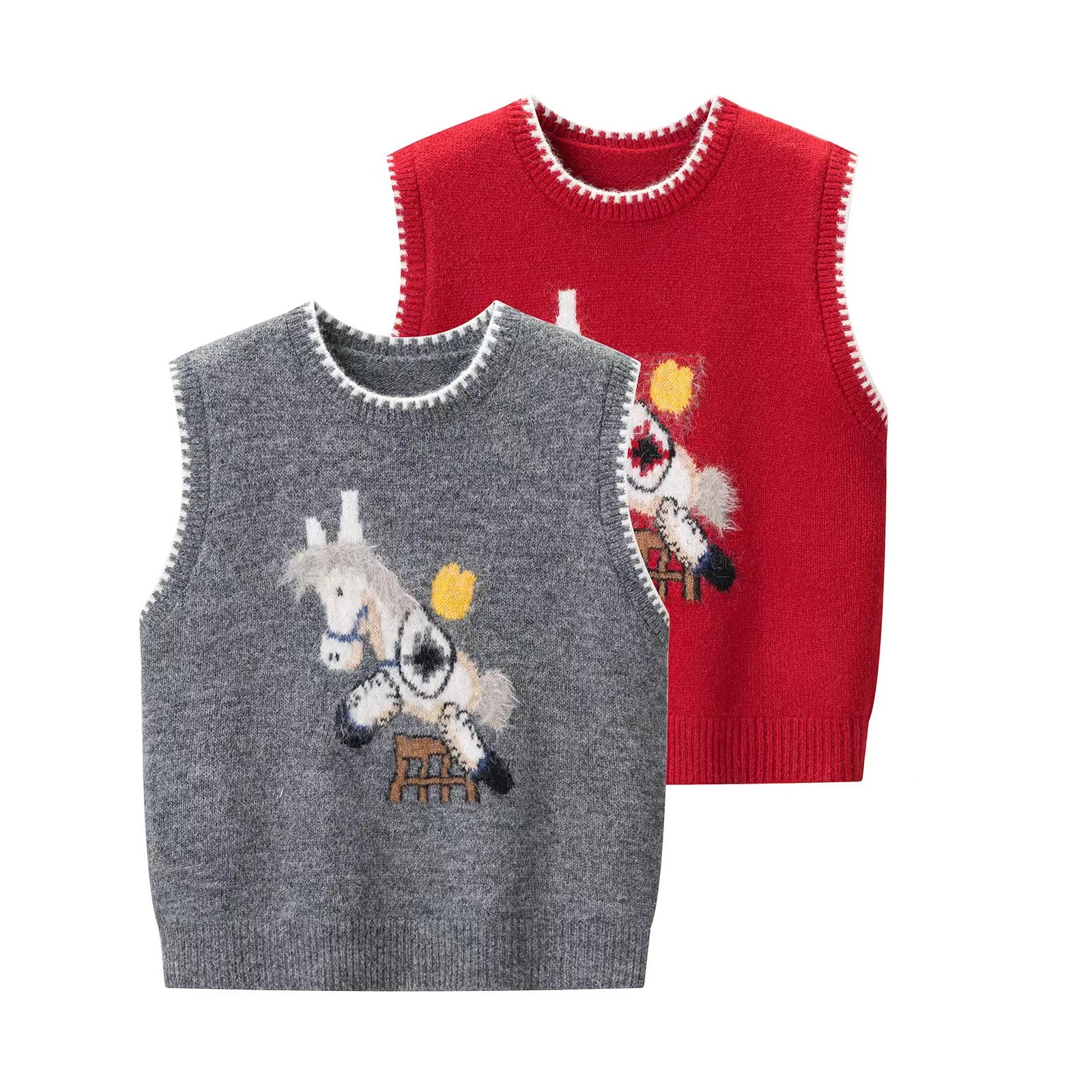 新年穿这件针织马甲也太合适了!红色款自带节日氛围,灰款简约百搭,小马刺绣图案童趣又jing致,撞色包边还添了细节感。软糯的针织面料亲肤又保暖,无袖版型超适合叠穿,内搭高领打底、衬衫都好看,搭大衣、羽绒服也能穿出层次感。不管是过年走亲访友还是日常出街,红灰两色都能轻松拿捏不同风格,一件解锁秋冬N种穿搭~