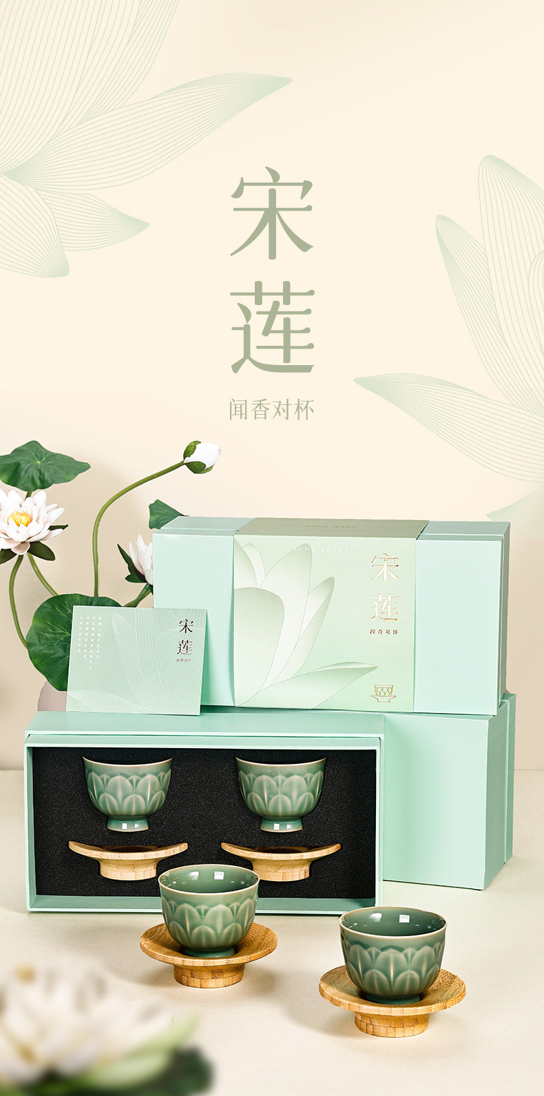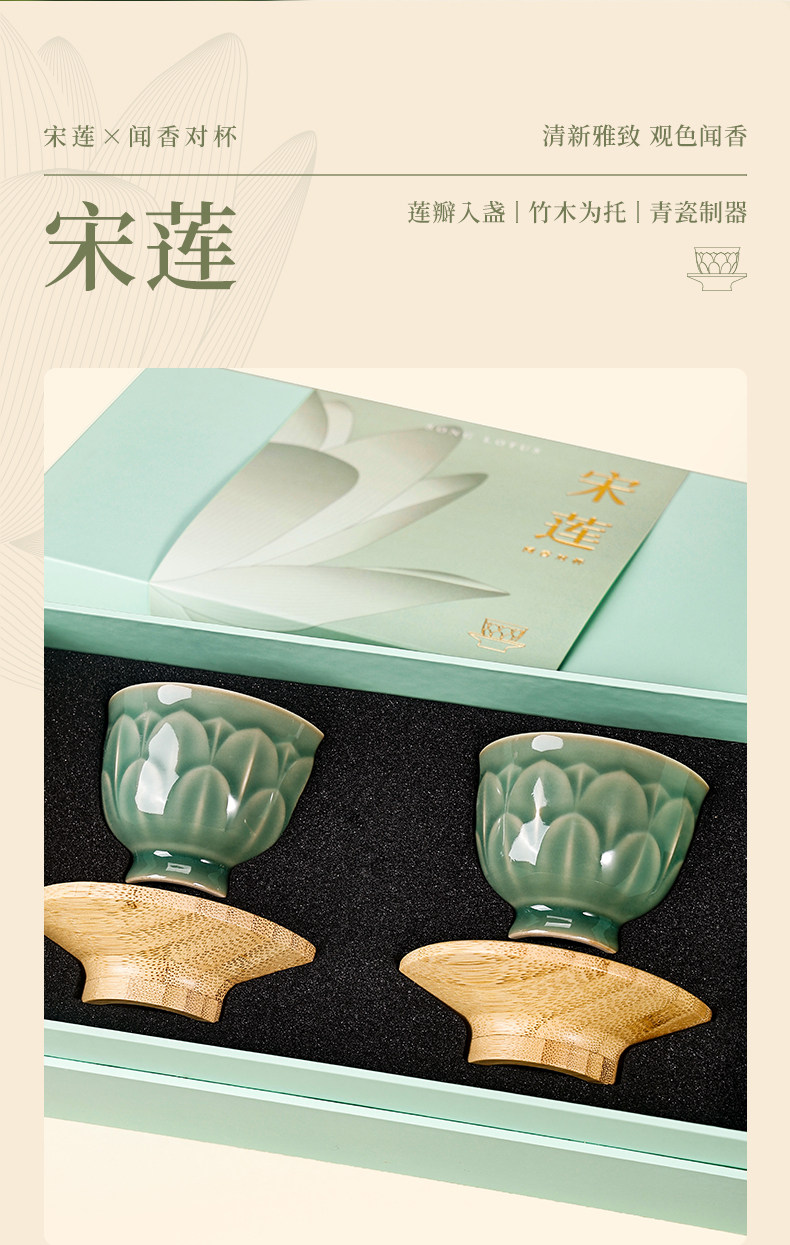 杭州西湖景区宋莲茶具茶托组合茶杯套组礼盒