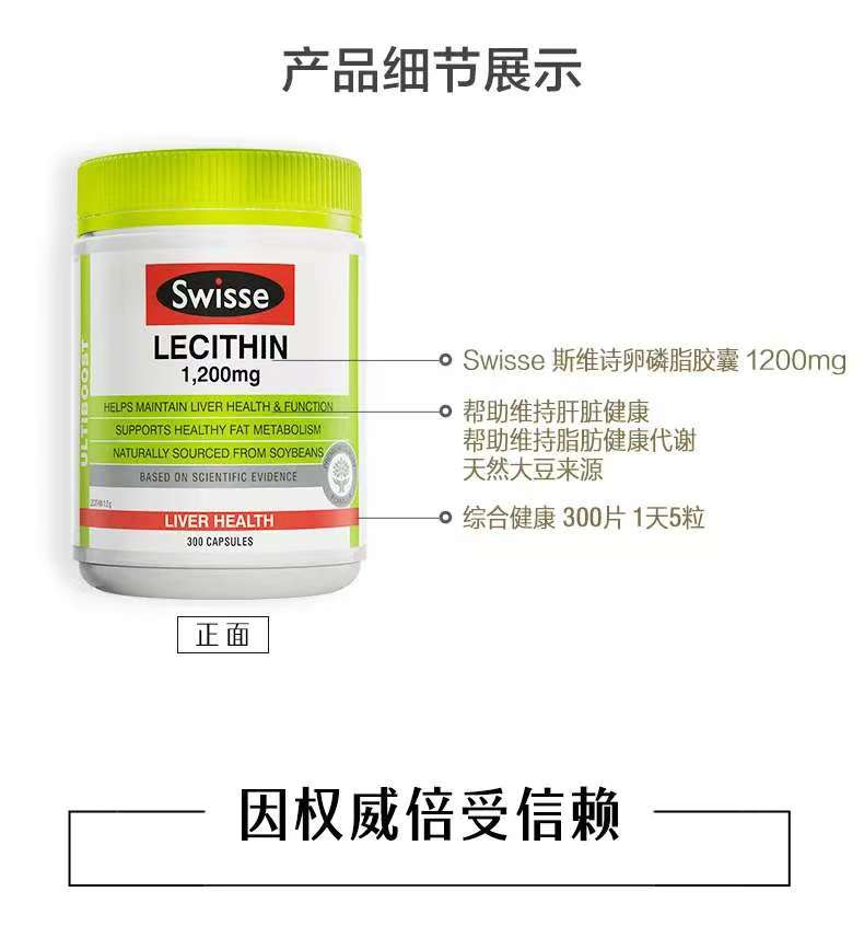 【保税区包邮直发】澳洲 Swisse 大豆卵磷脂软胶囊 300粒 包装随机