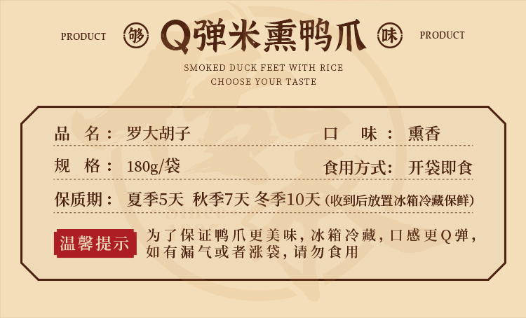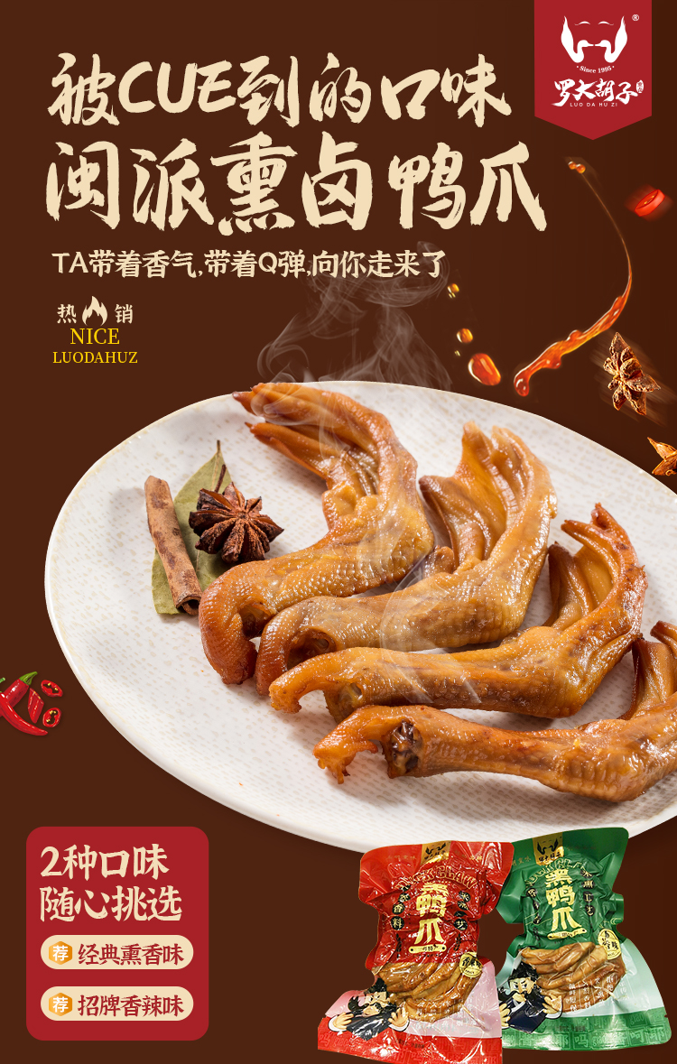 【招牌熏味】罗大胡子简装熏鸭爪/特产小吃零食8支装