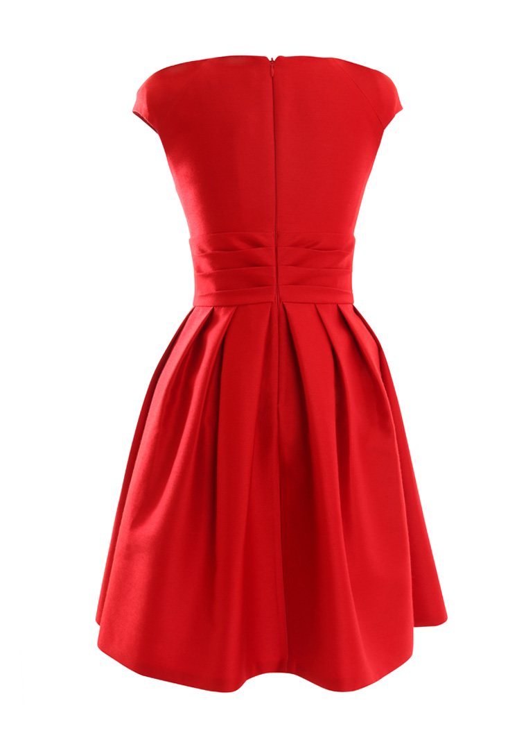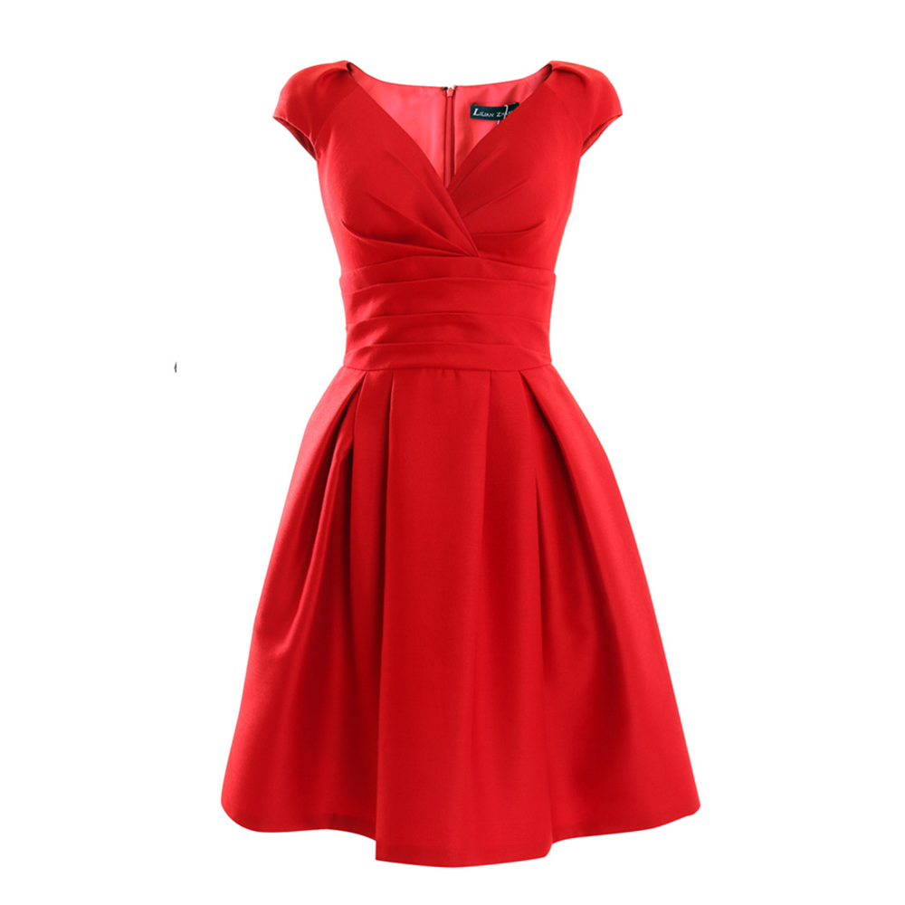 V领A摆丝毛小礼服连衣裙-优雅轻奢聚会红色华丽风礼服裙 1501108