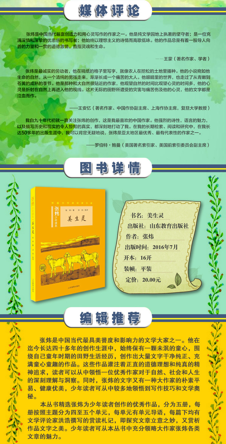 美生灵 张炜少年读本丛书 茅盾文学奖获奖作家