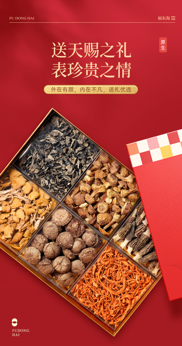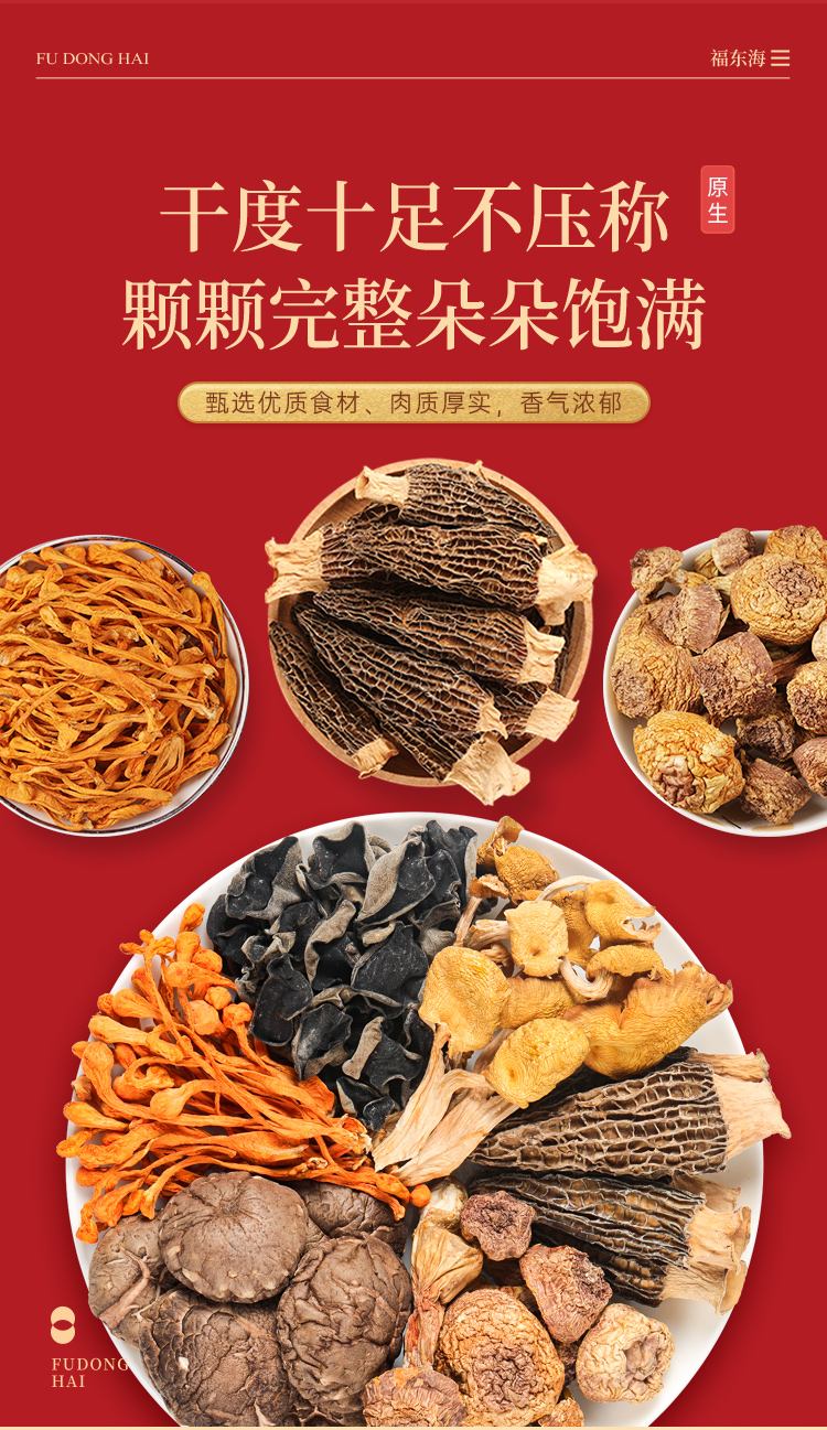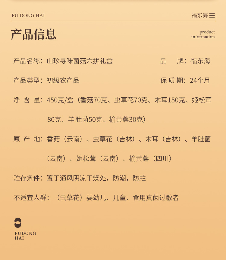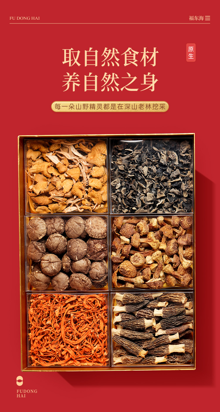 福东海 山珍寻味菌菇六拼礼盒450克 火锅煲汤材料 南北干货特产滋补 年货送礼