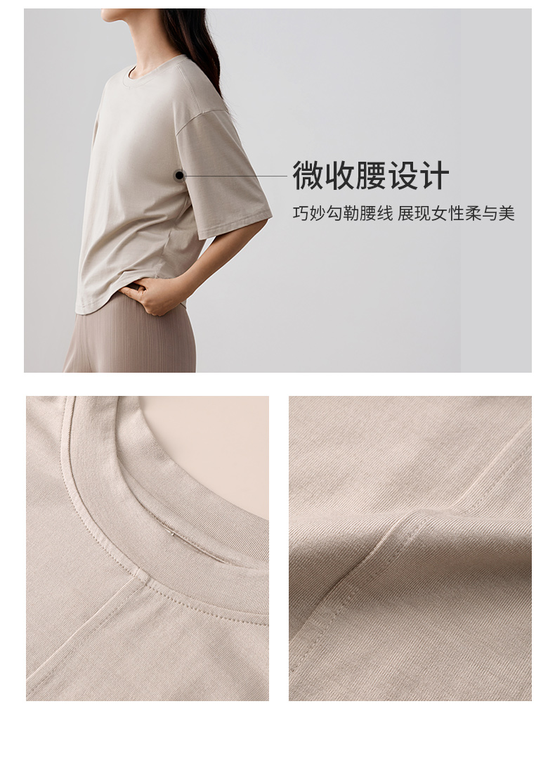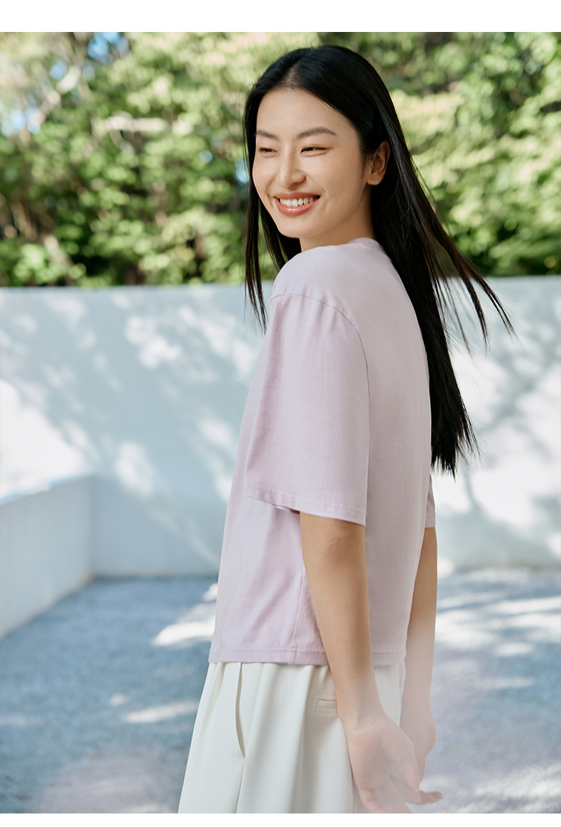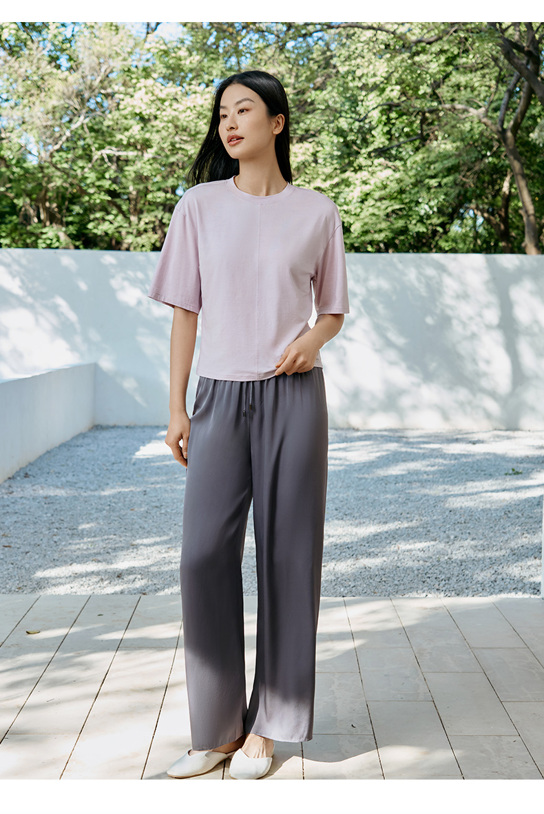 金三塔桑蚕丝小衫女透气舒适圆领简约宽松落肩短袖温柔通勤T恤新品 YZFFA702