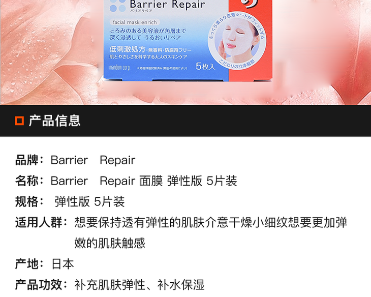 〖保税仓〗日本曼丹Mandom婴儿肌面膜弹性版5片/盒