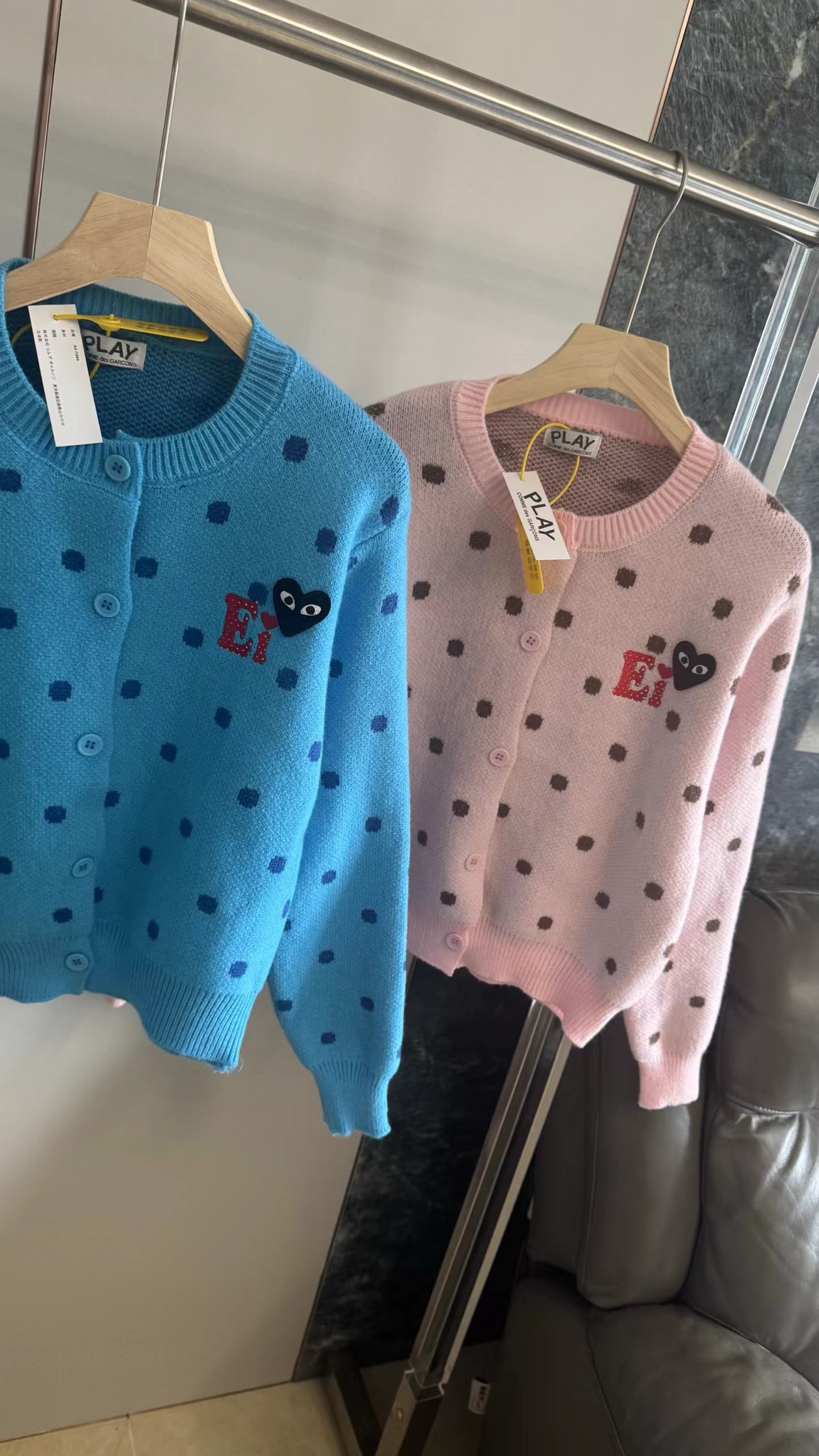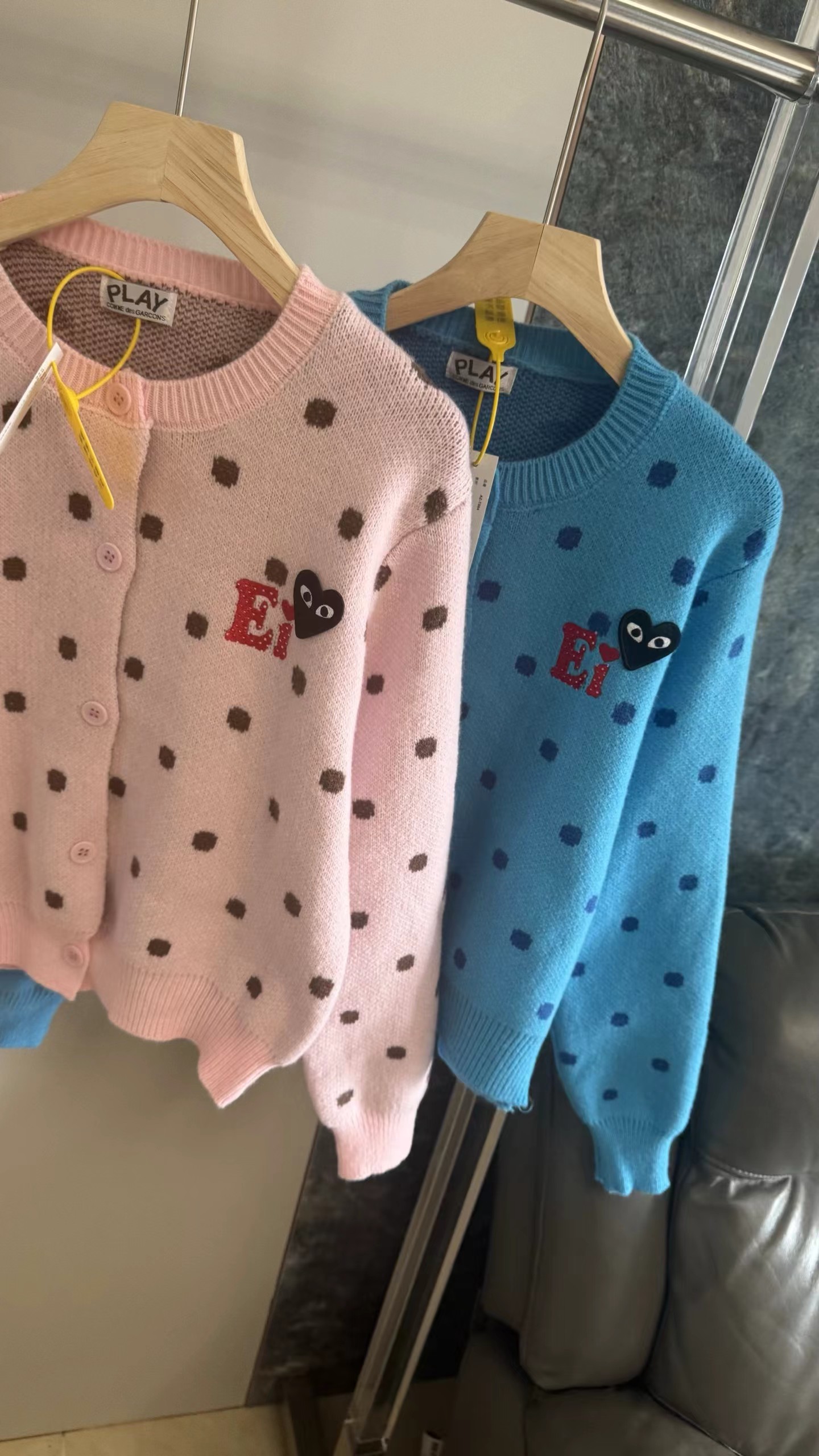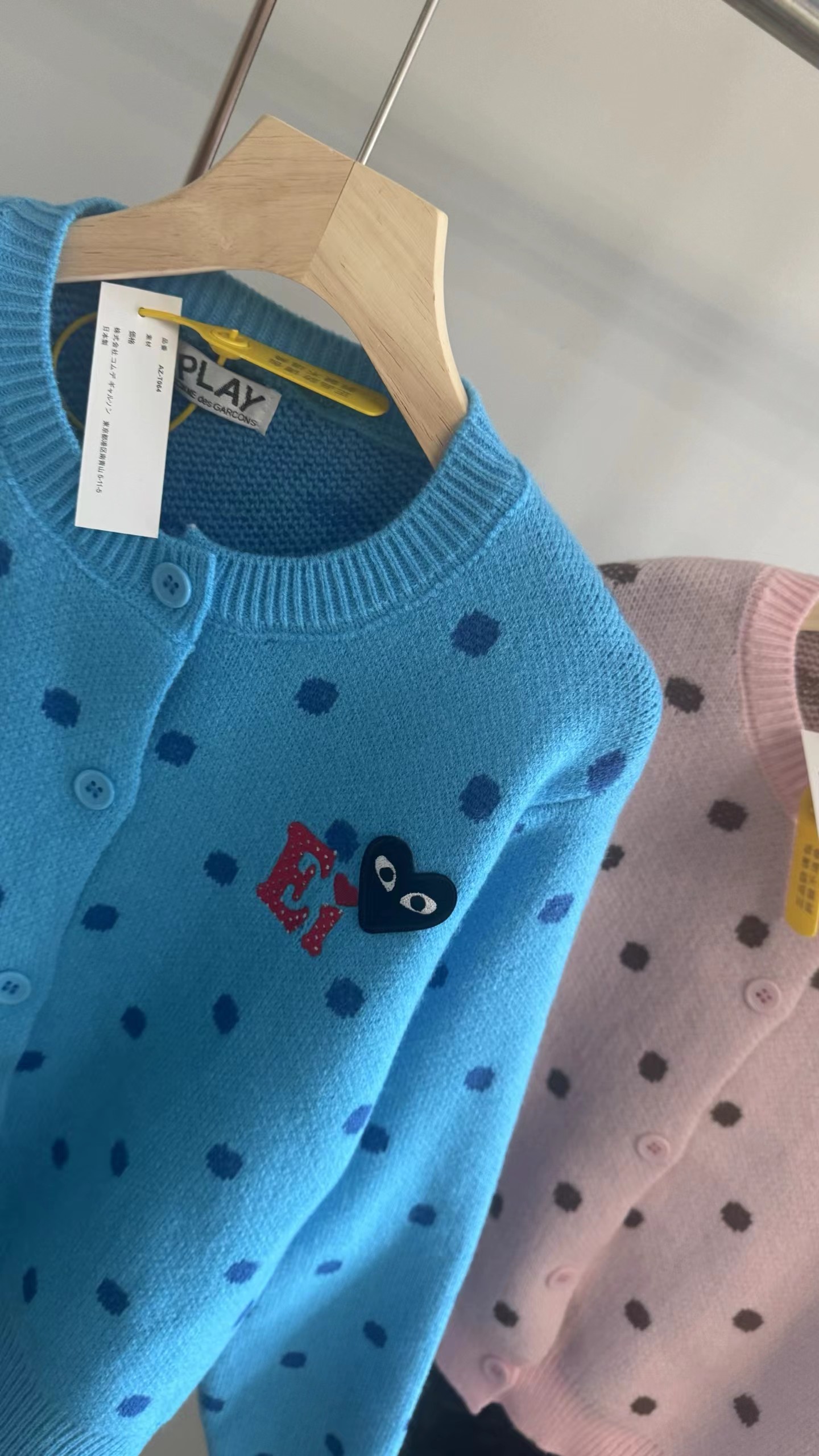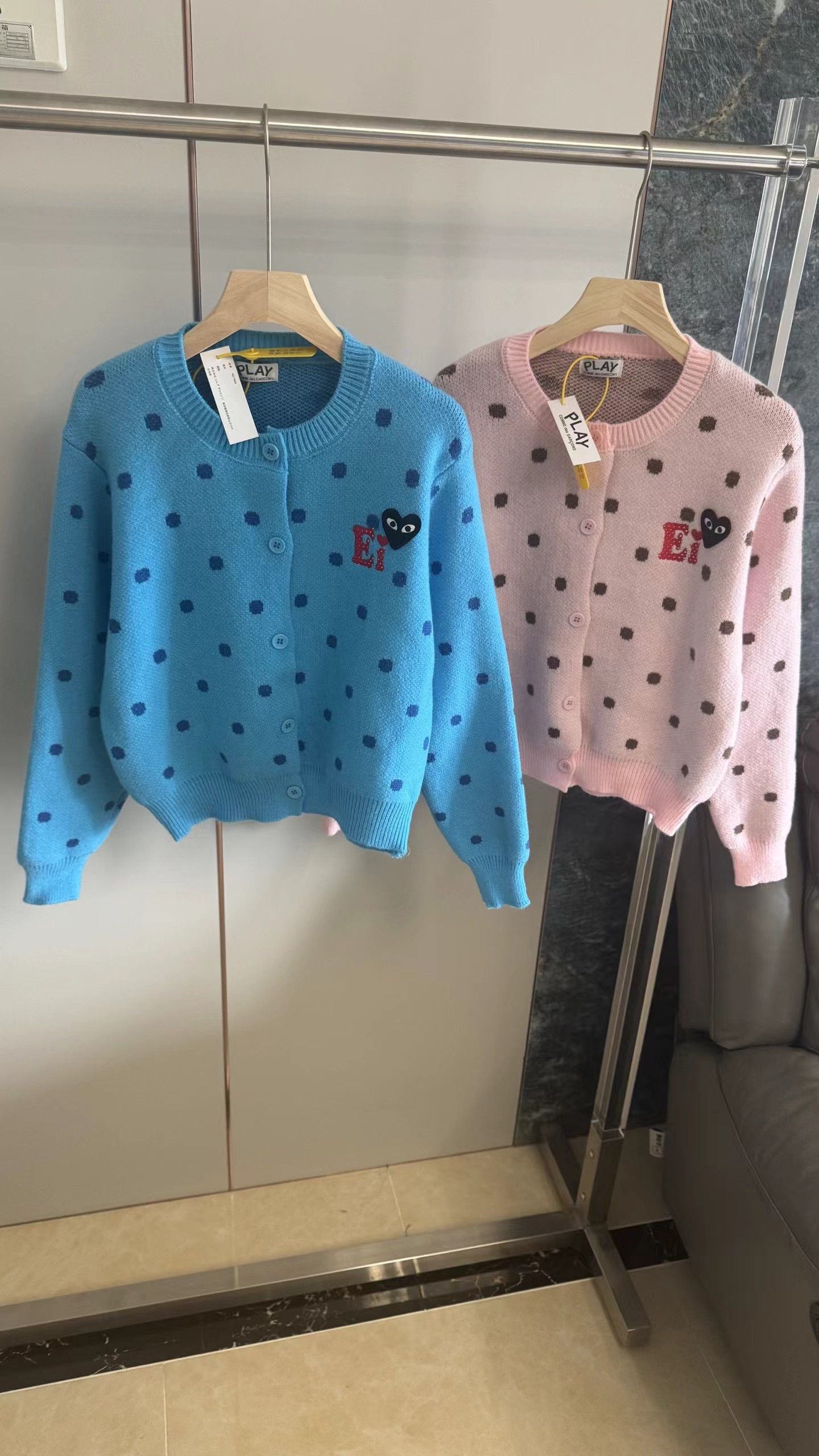 圆领单排扣针织开衫,版型宽松休闲,衣长偏短,对小个子友好且能优化身材比例。主体为清新明亮的颜色,满印同色系深波点,复古俏皮又充满元气感。柔软的针织面料,触感舒适,兼具保暖性与视觉蓬松感,适合春秋季节叠穿或单穿。爱心刺绣,趣味感十足,是视觉焦点。圆领、袖口与下摆均采用罗纹收口,贴合身形,不易变形,门襟为同色系圆形纽扣,简约耐看,与整体风格统一。美式复古+日系可爱风,活泼减龄,适配牛仔裤、工装裙等下装,适合日常出街、约会等轻松场景。