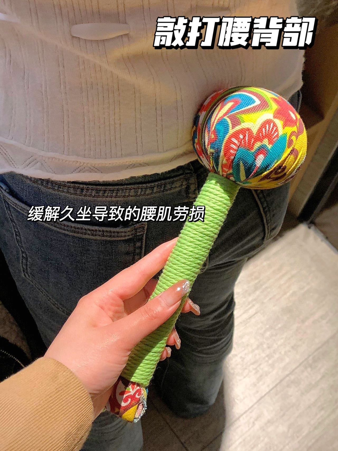 2⃣捶腰部:舒缓紧张的背部肌肉 缓解久坐导致的腰肌劳损