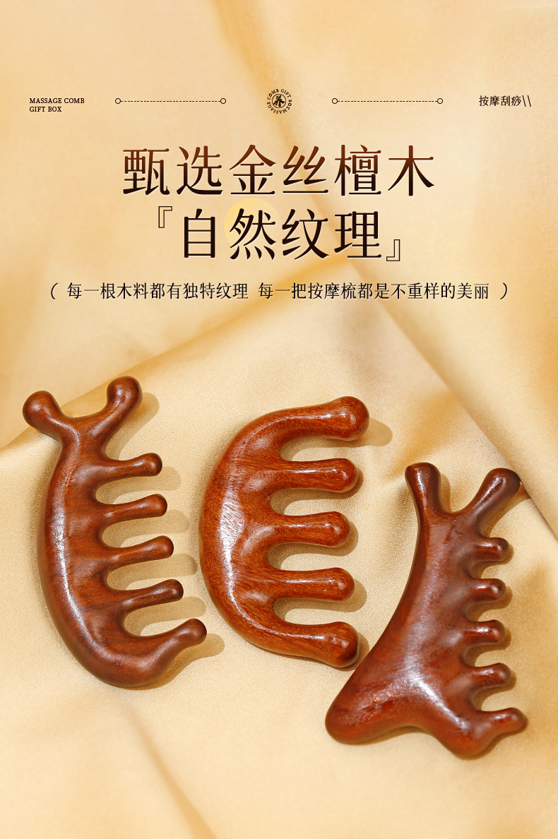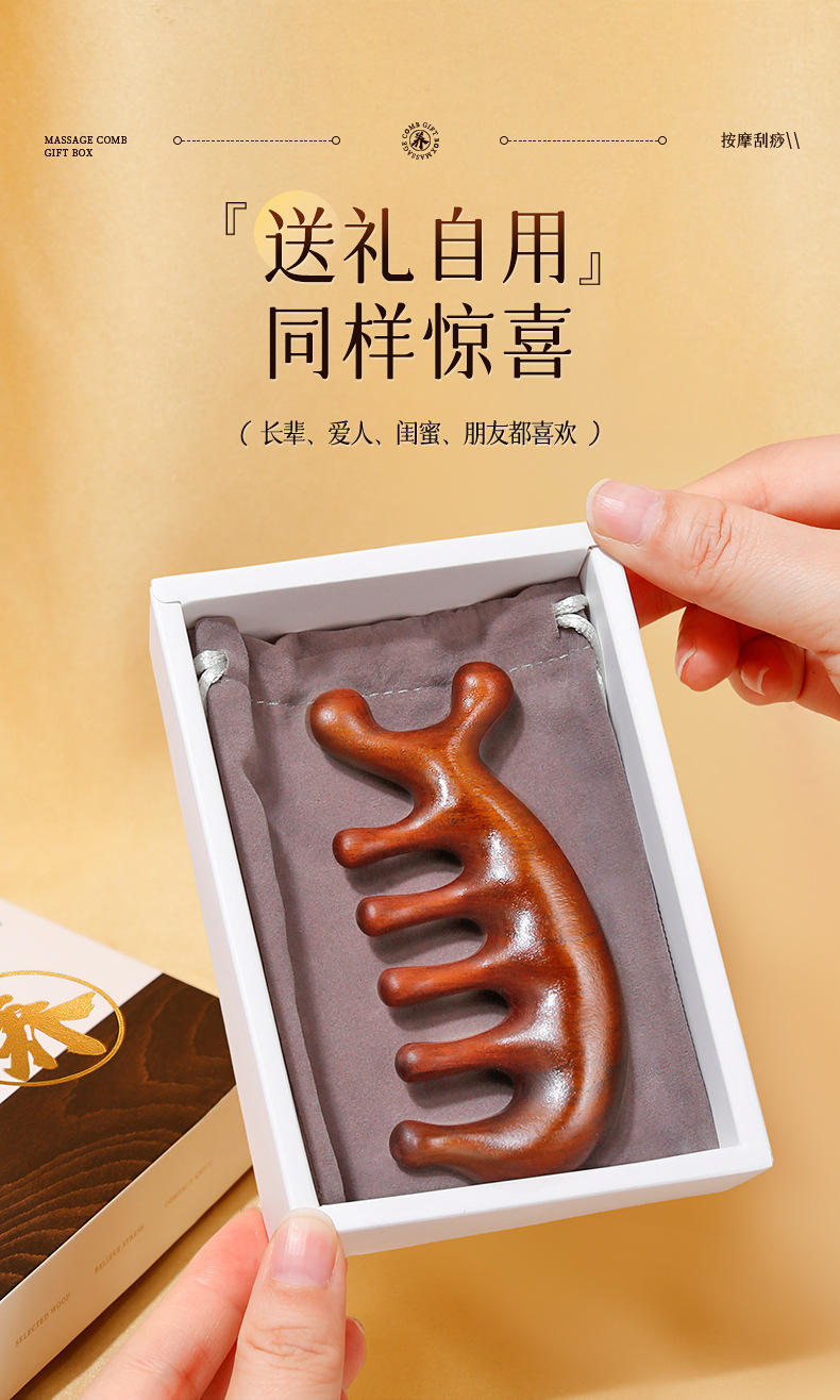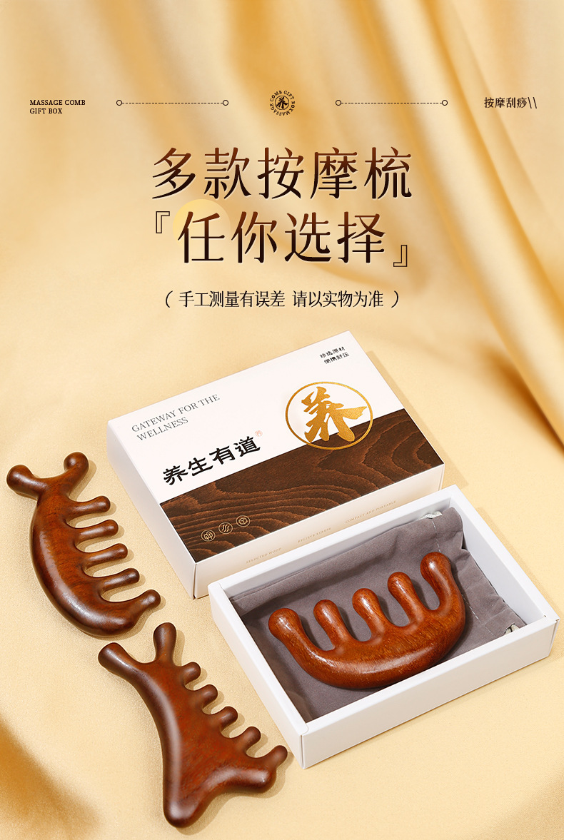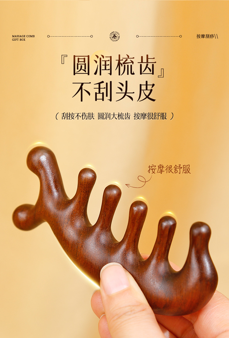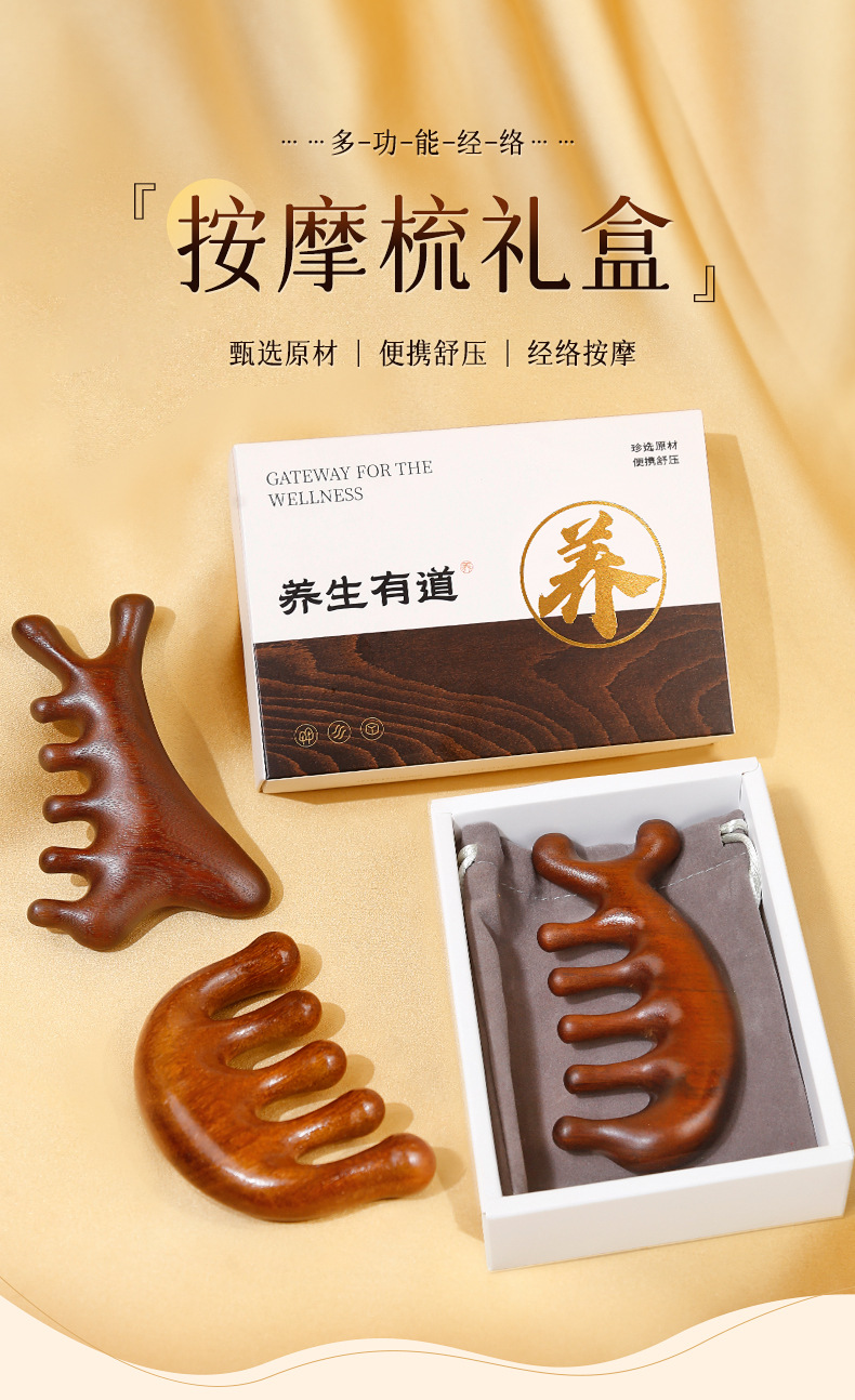 <有书独家>【养生有道❗金丝檀按摩梳礼盒】「一梳多用」享受专业级别SPA,刮按不伤肤/圆润大梳齿/按摩很舒服, 金丝檀木头皮经络梳子头疗按摩梳L