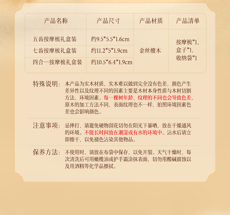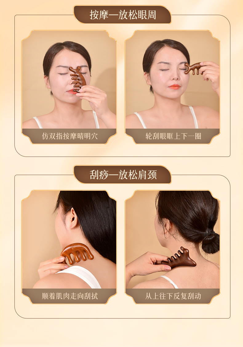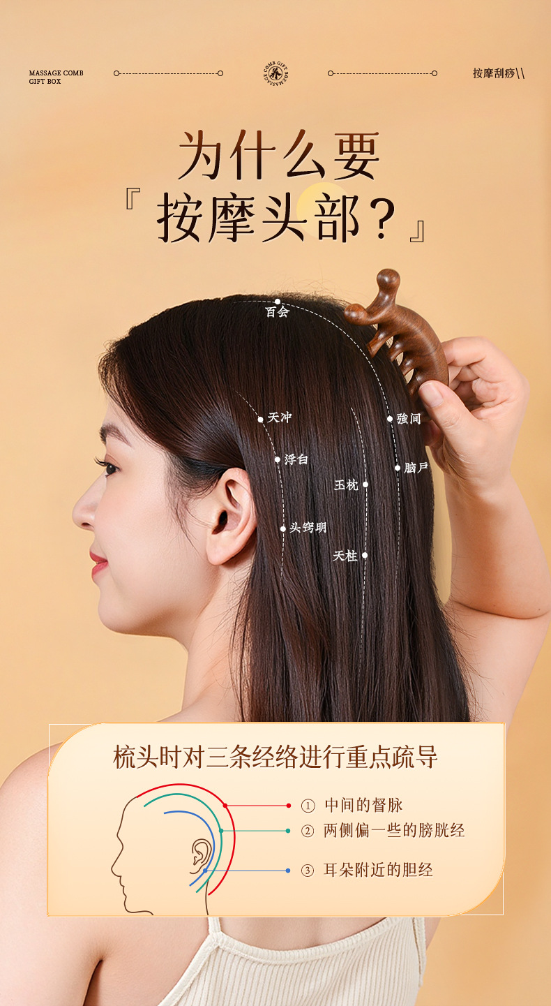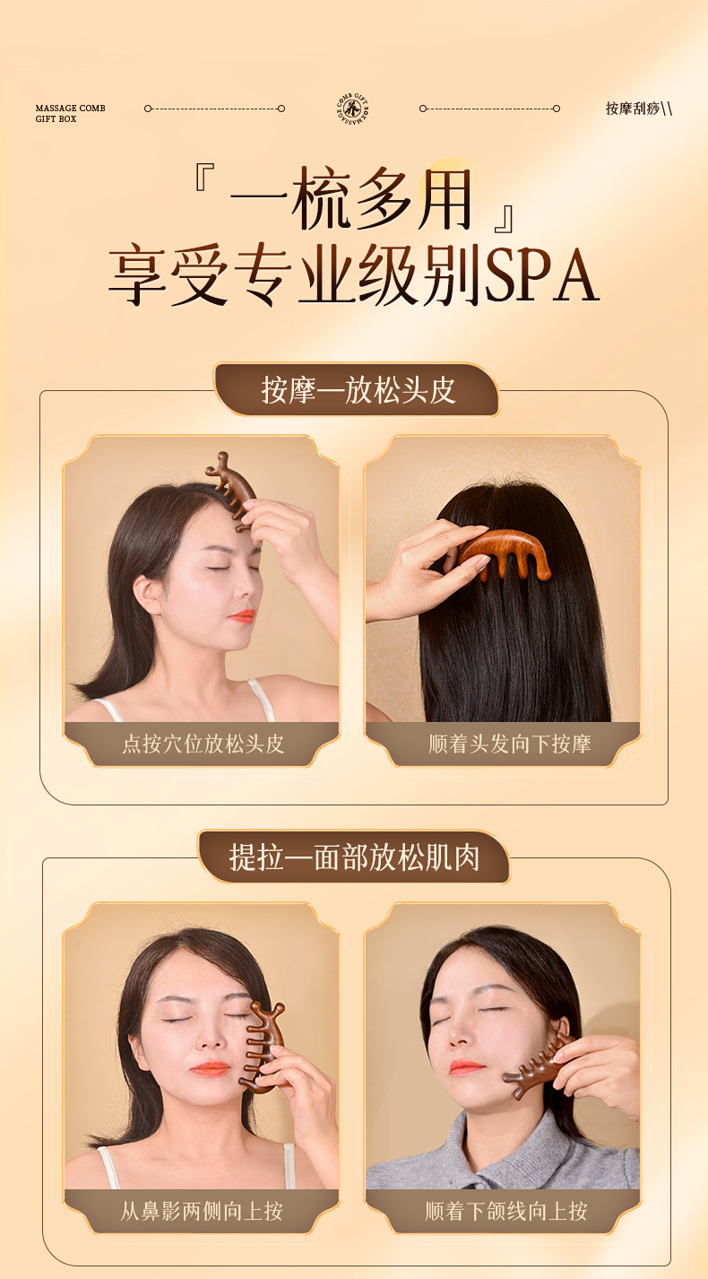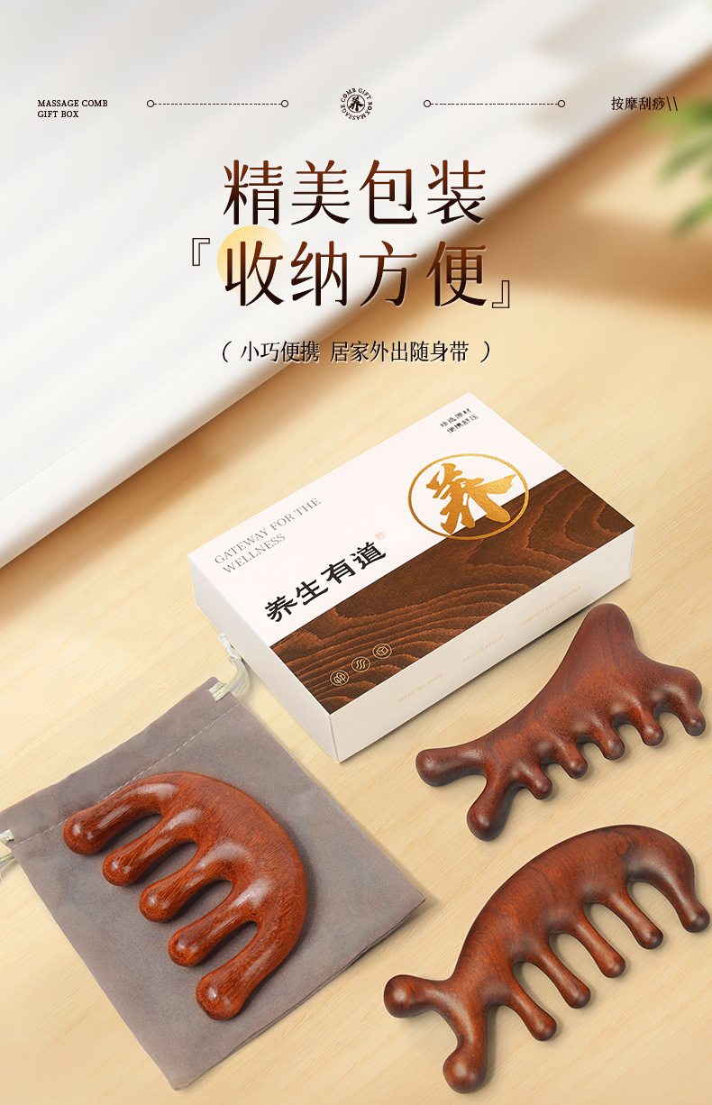 <有书独家>【养生有道❗金丝檀按摩梳礼盒】「一梳多用」享受专业级别SPA,刮按不伤肤/圆润大梳齿/按摩很舒服, 金丝檀木头皮经络梳子头疗按摩梳L