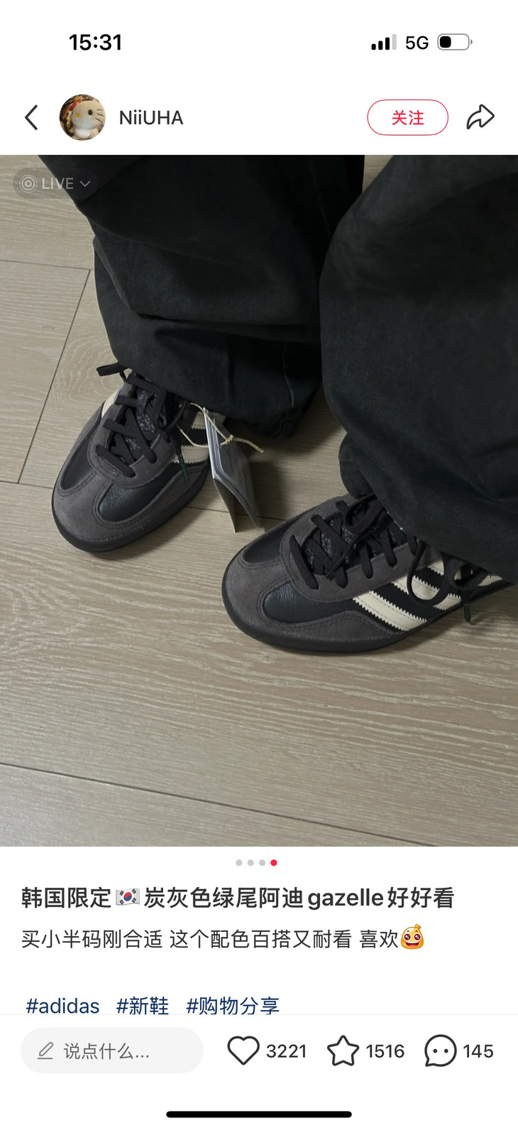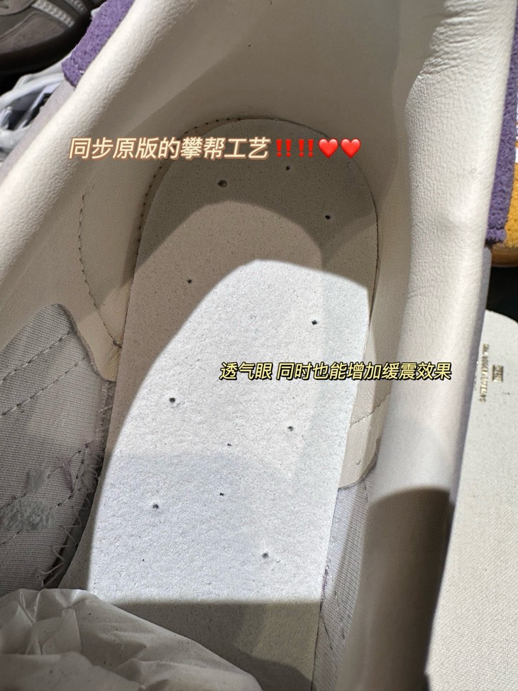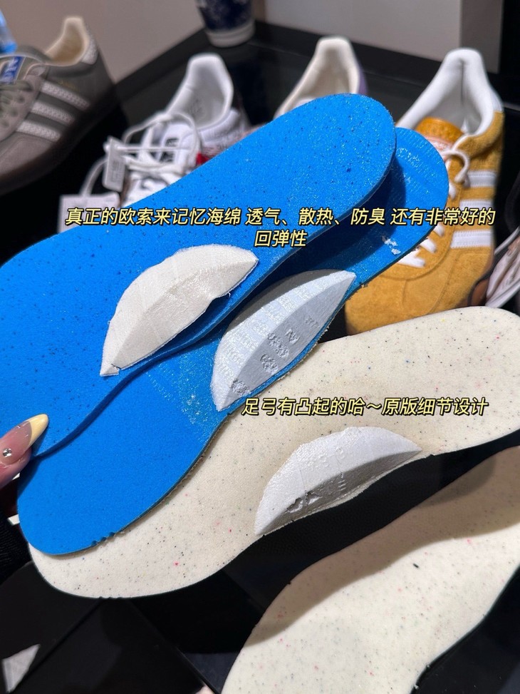 1️⃣Gazelle整体鞋型比较硬朗,尤其是鞋舌位置,比较挺括,内里空间很足 长时间穿也不会感到闷