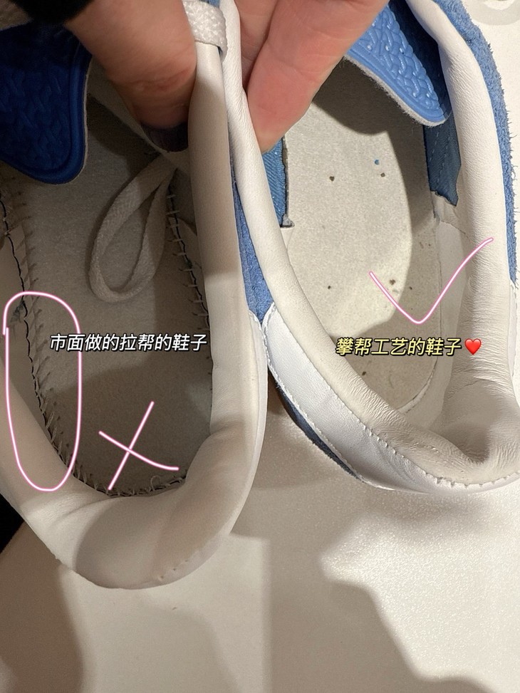 所有有拉帮线的全都是一眼假!!记住原版是攀帮工艺,不是套楦