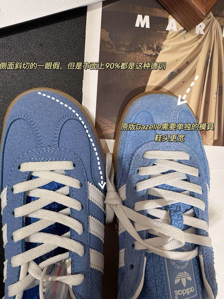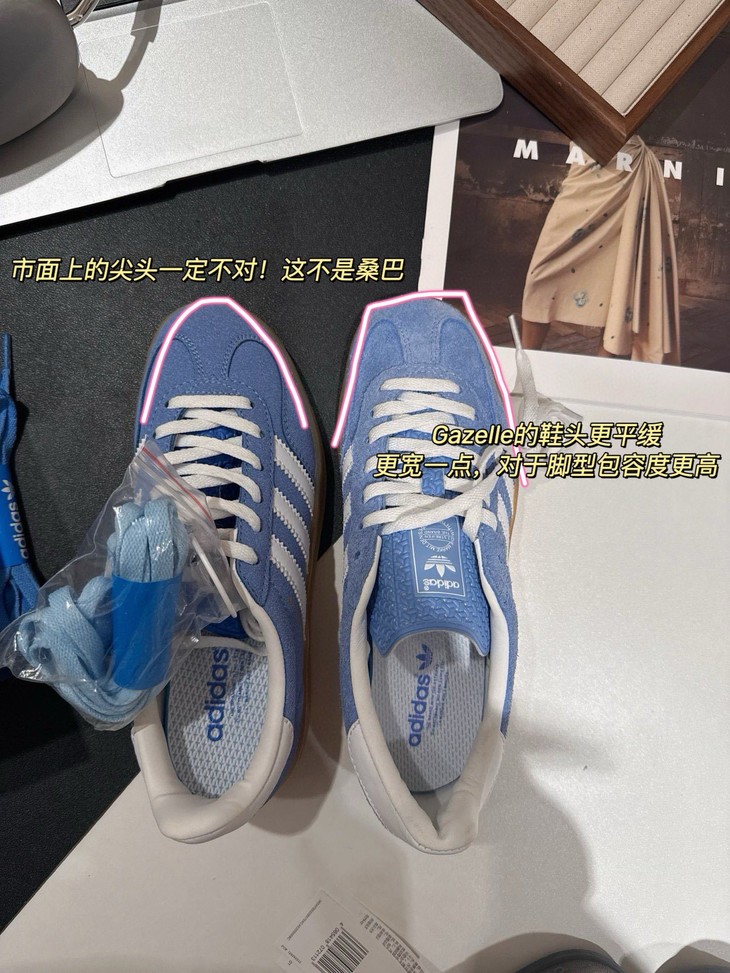 3️⃣你们所钟爱的古驰就是以gazelle 为原型,侧边脚踝位置比其它的要稍微高一点,后跟收紧,特别秀气!很多市面上注意不到的点 今天掰开了揉碎了给你们讲清楚 不是Samba的楦头 一定要懂