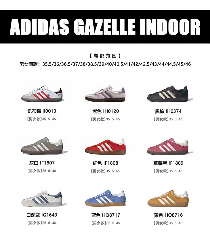 一共9个配色,还有联名𝐊𝐢𝐭𝐡猫 区别于市面那些乱七八糟的东西 不一样 脚感真不同 内里都是全头层皮 🔺🔺 区别于经典的𝐬𝐚𝐦𝐛𝐚 𝐆𝐚𝐳𝐞𝐥𝐥𝐞系列最初是为了田径运动员设计,而samba是为了足球运动员而生,两个款虽然看似相似,其实用到的是两种完全不一样的鞋楦❗️ ▪️𝐆𝐚𝐳𝐞𝐥𝐥𝐞整体鞋型比较硬朗,尤其是鞋舌位置,比较挺括,内里空间很足 长时间穿也不会感到闷 ▪️相对于之前的德训 它的足弓会更高 对于脚型没有限制,哪怕是脚胖脚宽穿上也不会说卡脚 一点都不挤 ▪️你们所钟爱的古驰就是以gazelle为原型,侧边脚踝位置比其它的要稍微高一点,后跟收紧,特别秀气!很多市面上注意不到的点 今天掰开了揉碎了给你们讲清楚 不是Samba的楦头 一定要懂 关于皮料🔺🔺收到你就懂 从头到尾都没给那些国产皮一点机会,它的绒毛感 颜色 质地 手感都有着本质的区别 ⚠️全部是情侣码 试穿码数正 码数范围:𝟑𝟓.𝟓 36 36.5 37 38 38.5 39 𝟒𝟎 𝟒𝟎.𝟓 𝟒𝟏 𝟒𝟐 𝟒𝟐.𝟓 𝟒𝟑 𝟒𝟒 𝟒𝟒.𝟓 𝟒𝟓 𝟒𝟔四色翻毛皮码数到𝟒𝟓
