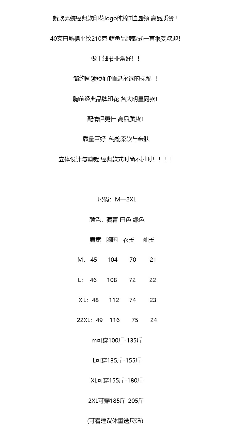 【cyz1】新款男子经典印花棉质圆领短袖T恤!!