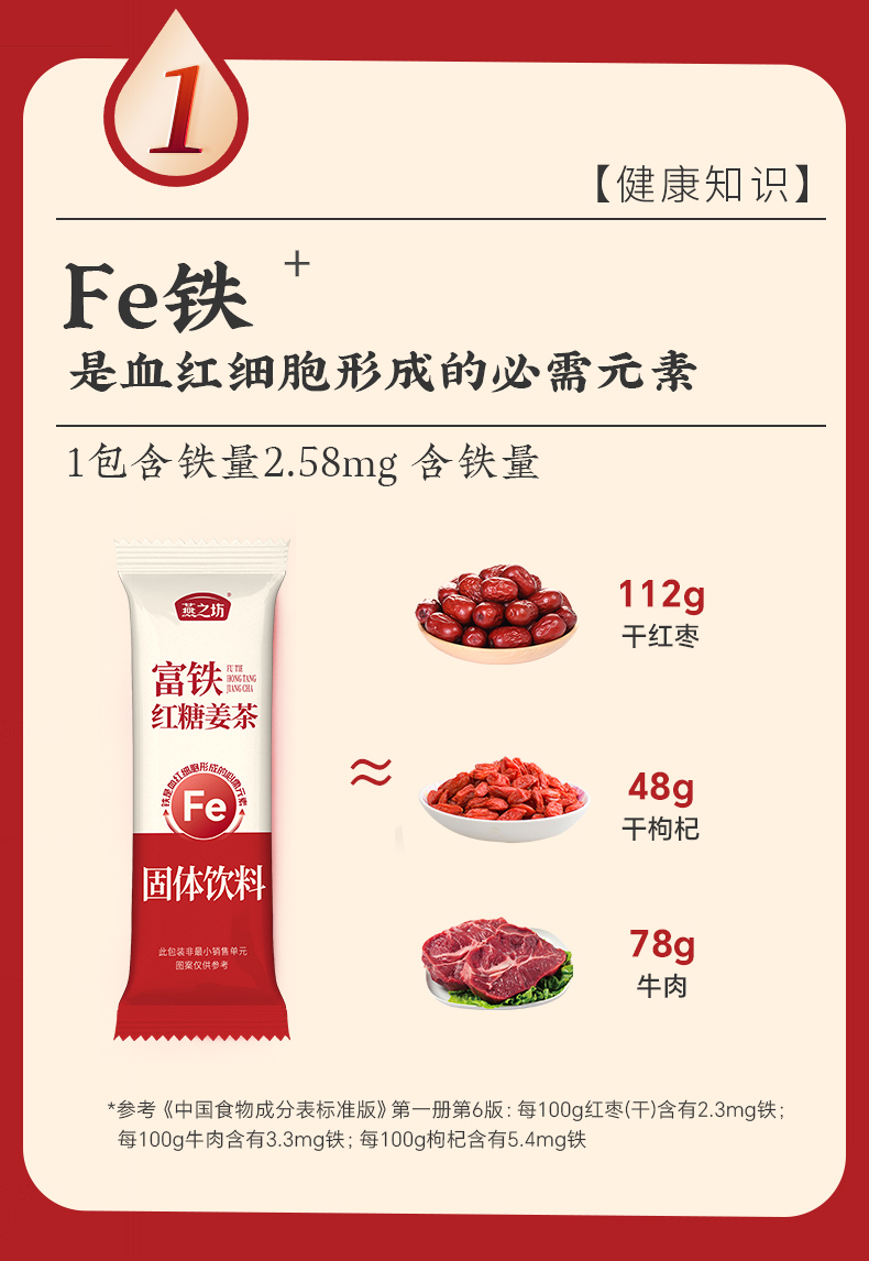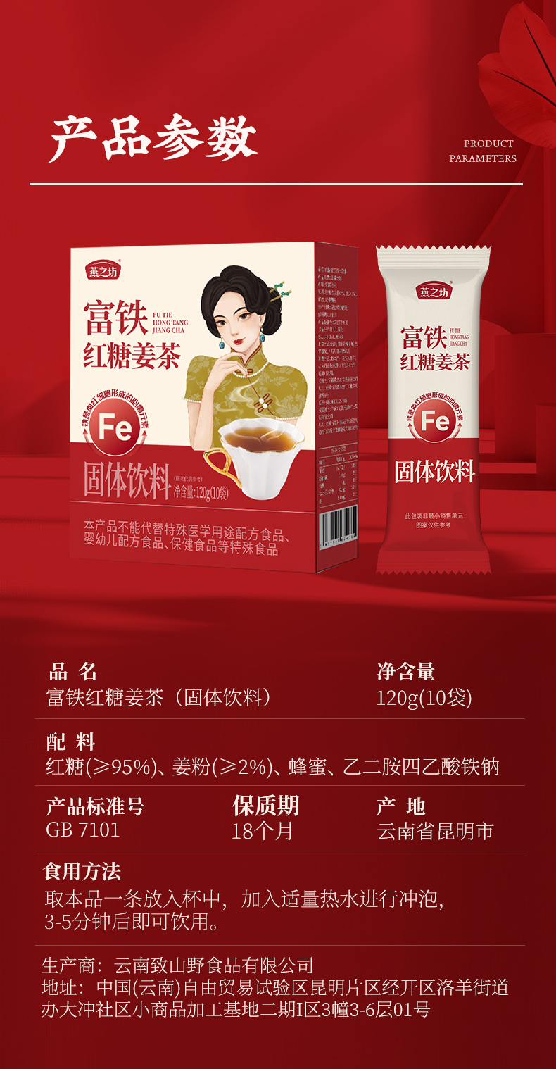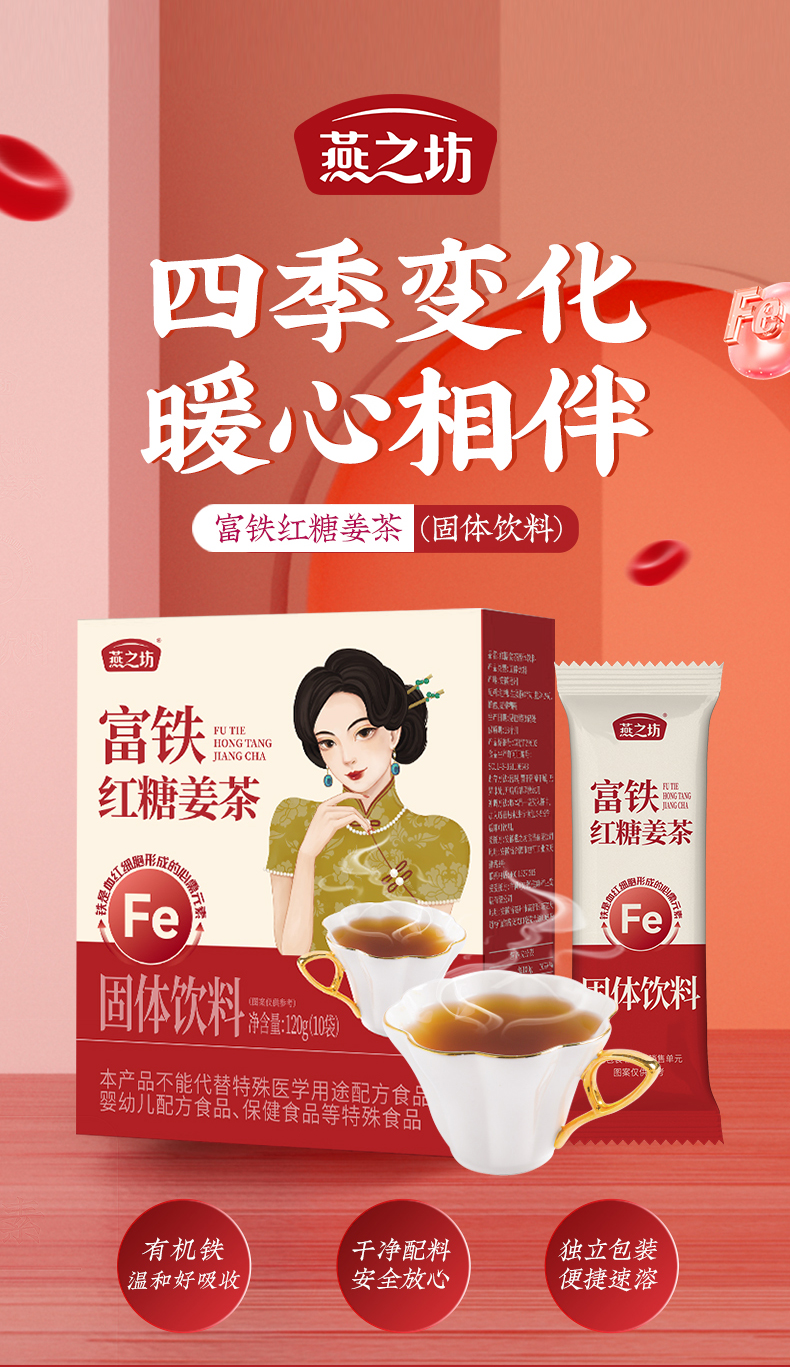 【商城专属-到手2盒】燕之坊富铁红糖姜茶120g 独立小包装*2