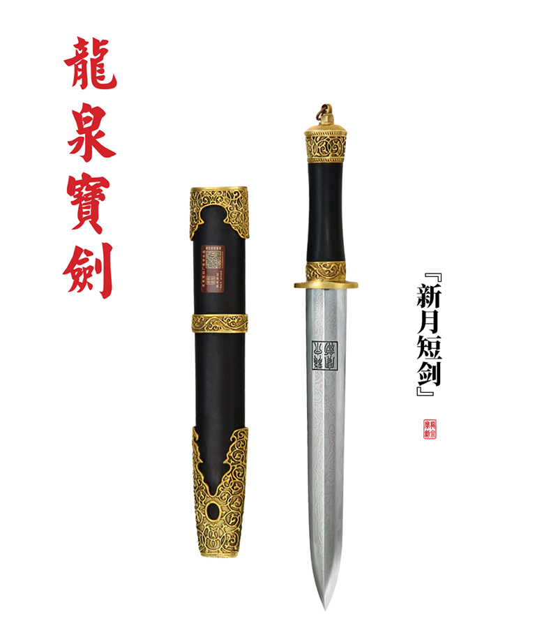 新月短剑 ▏《龙门飞甲》电影剑 百炼折叠锻造花纹钢刃 名贵黑檀木鞘 纯铜手雕剑装(未开刃)