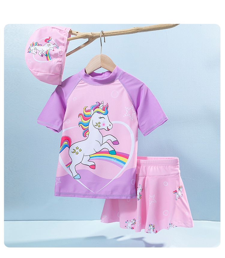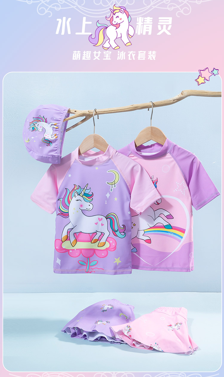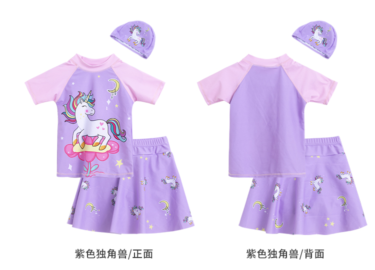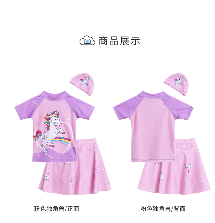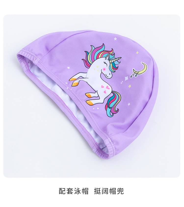 贝贝怡夏儿童泳衣套装女童泳衣裙裤泳帽3件套女宝宝速干泳装 222P2455