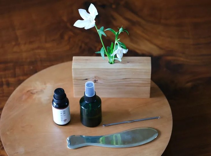 敷油的时候,我还会用铜板刮拭,可以促进皮肤清理深入的垃圾。