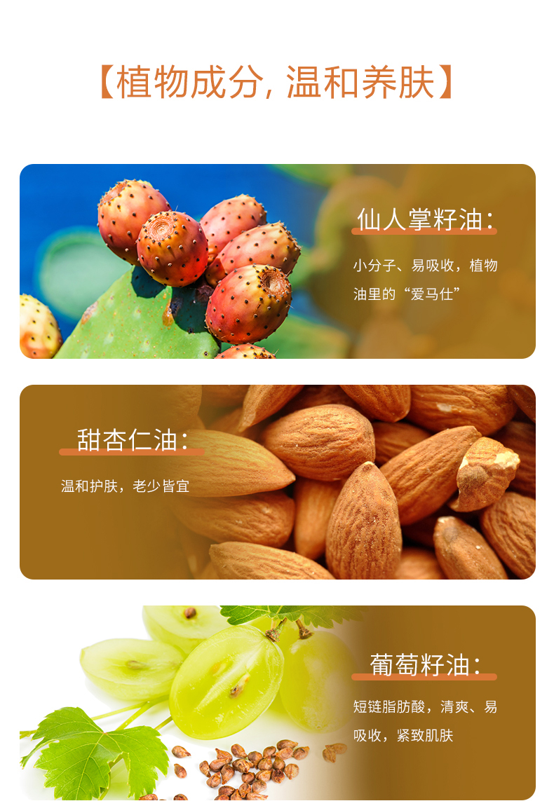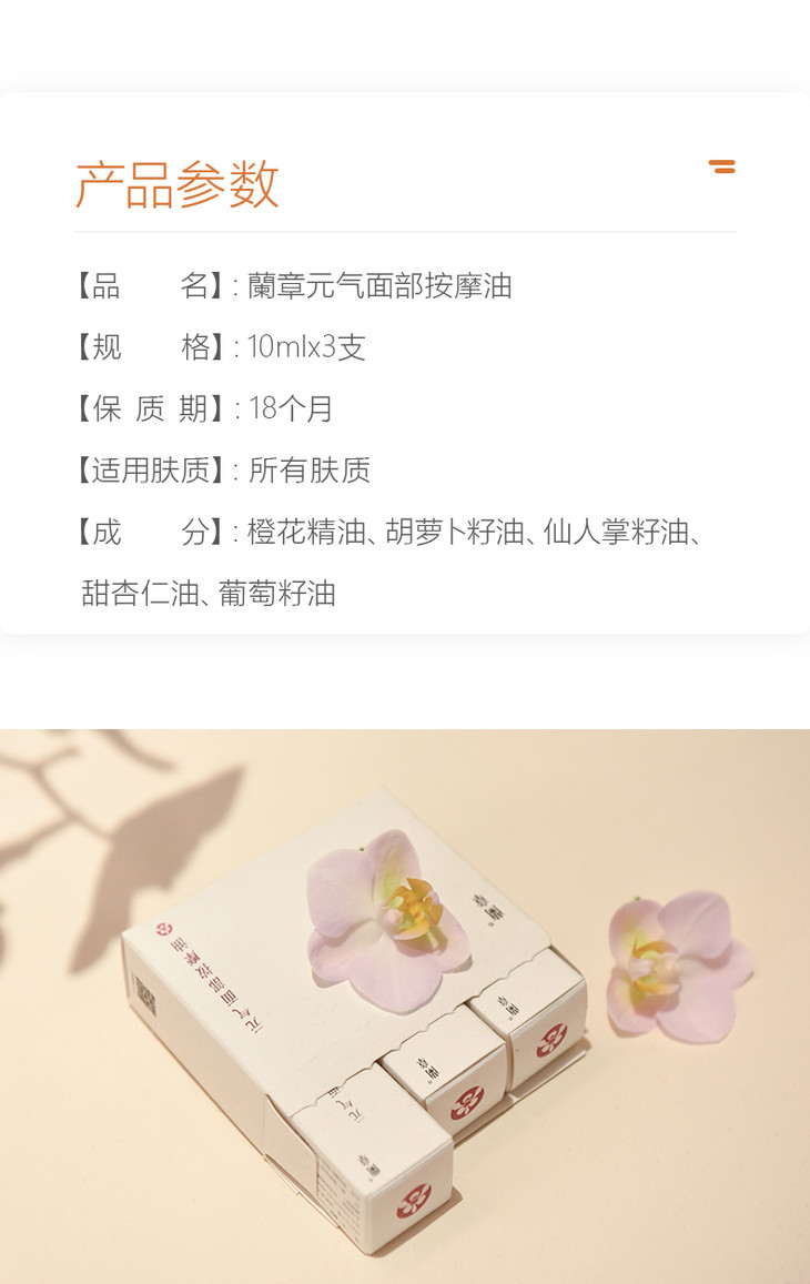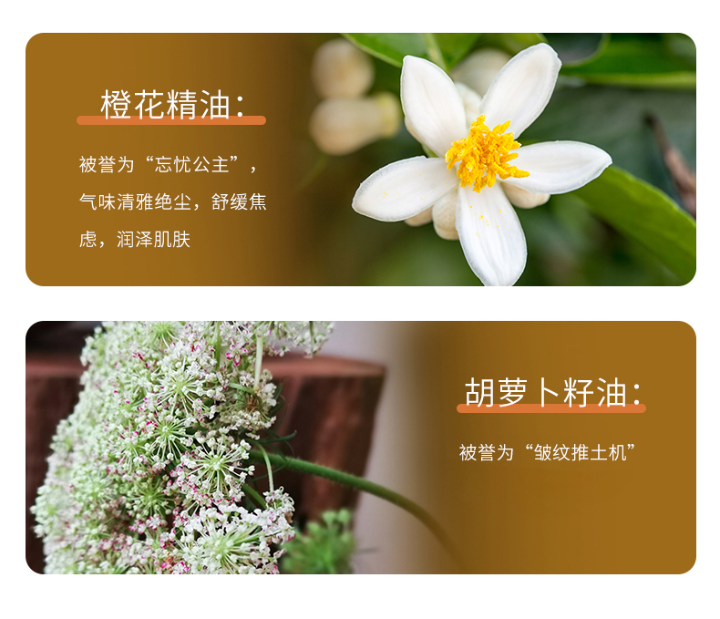 【成分】橙花精油、胡萝卜籽油、仙人掌籽油、甜杏仁油、葡萄籽油