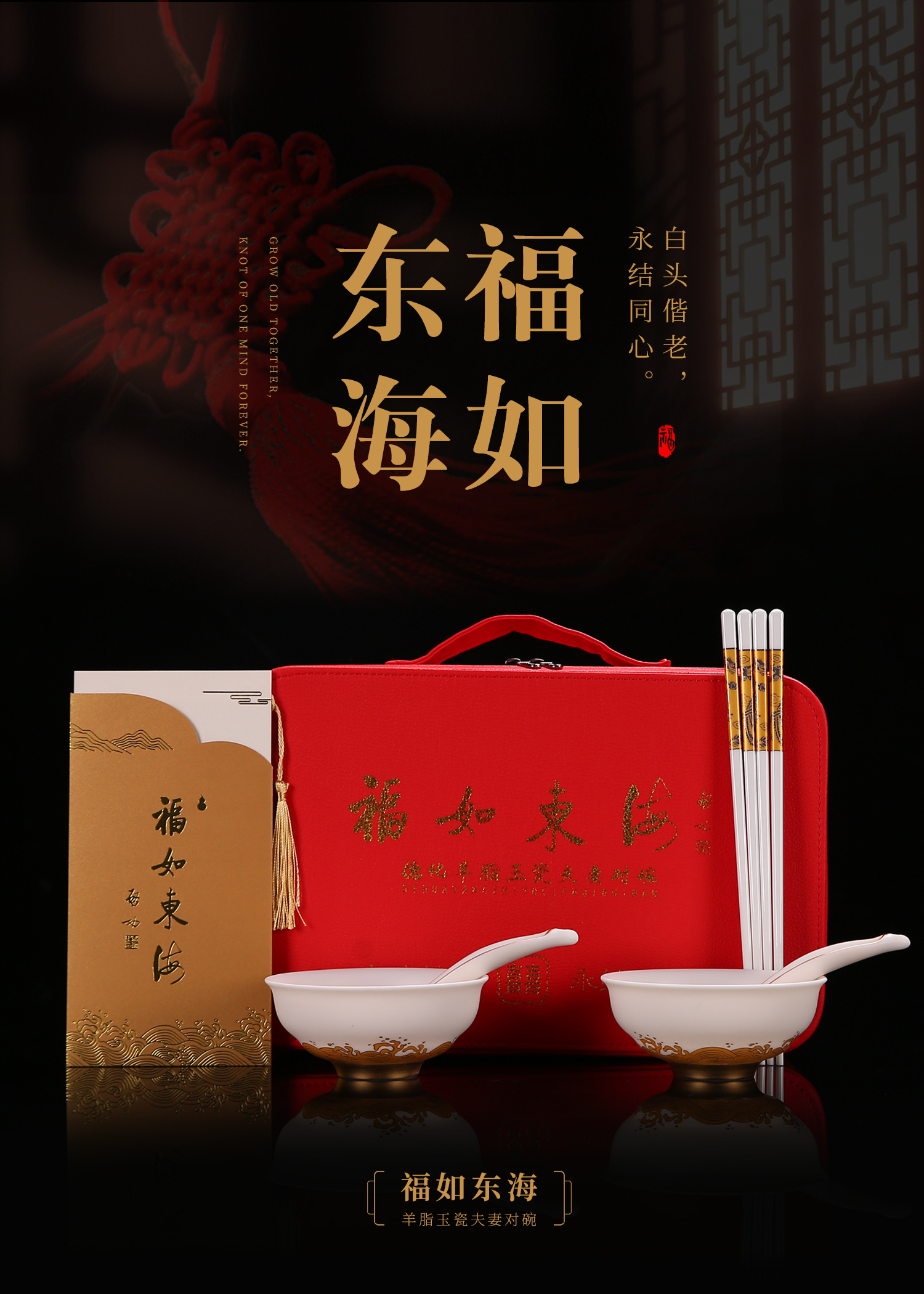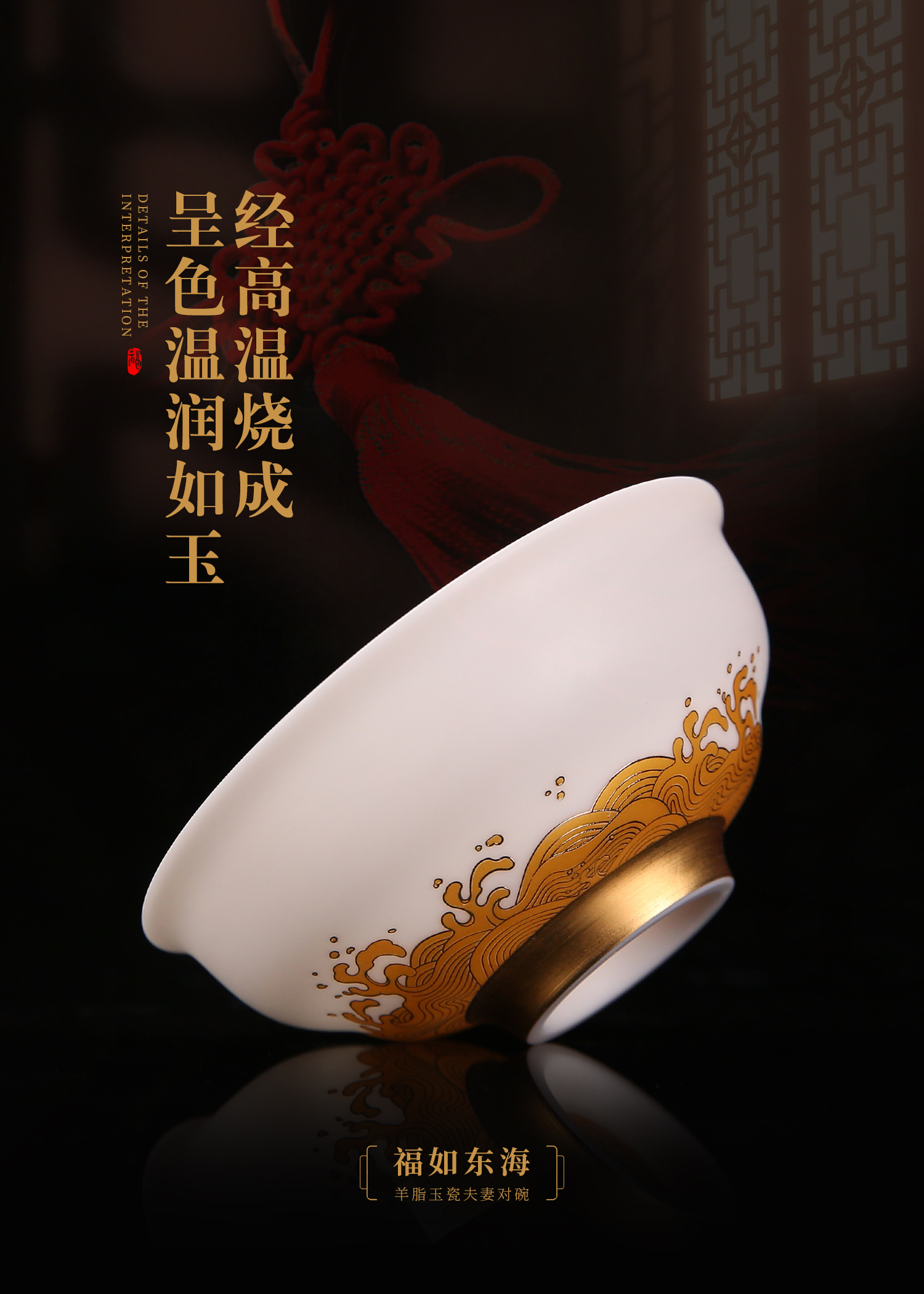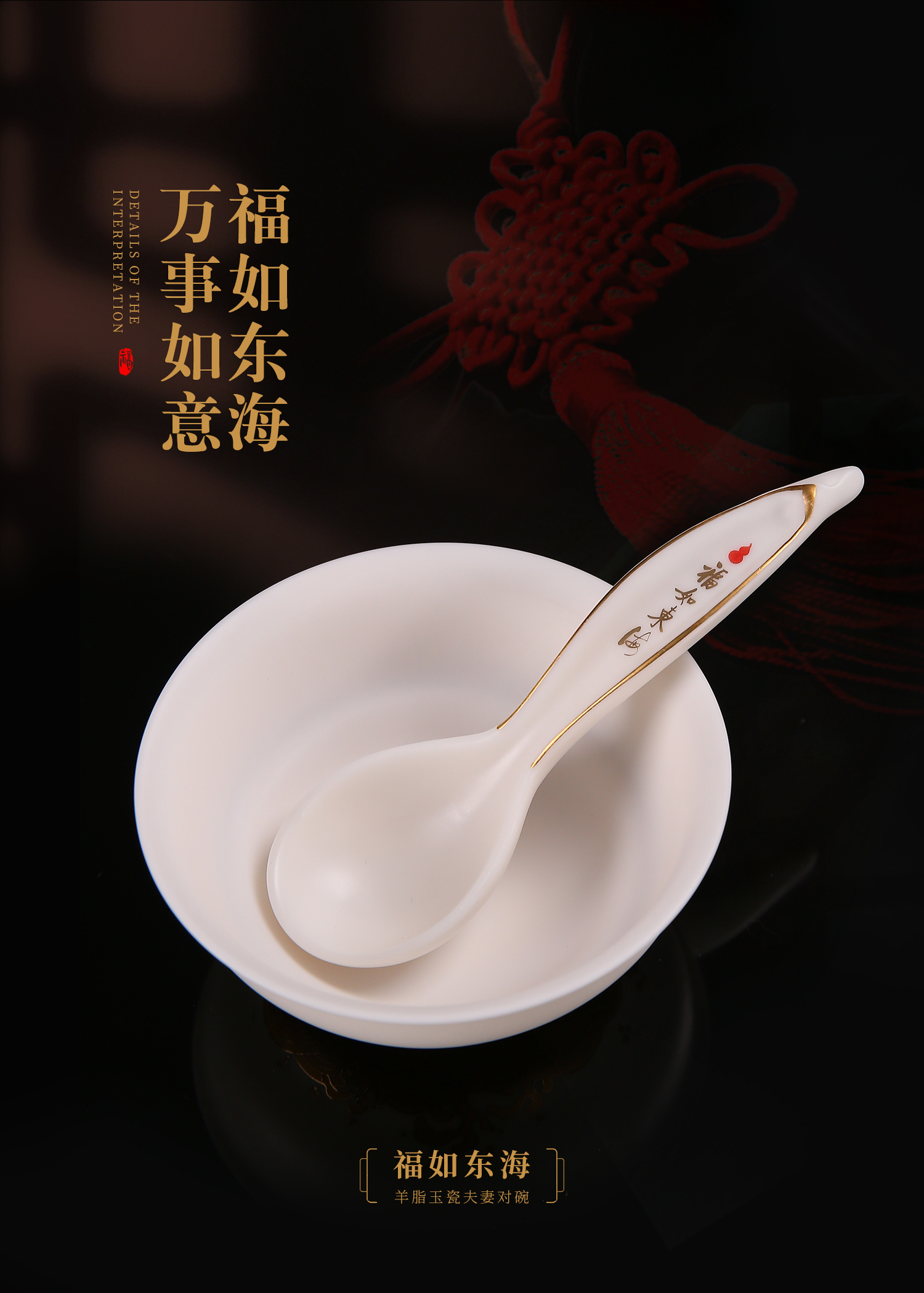 【白头偕老 永结同心】福如东海德化羊脂玉瓷碗,匠心制作 荧光透亮,瓷质如脂似玉 珍藏品鉴 送礼臻品