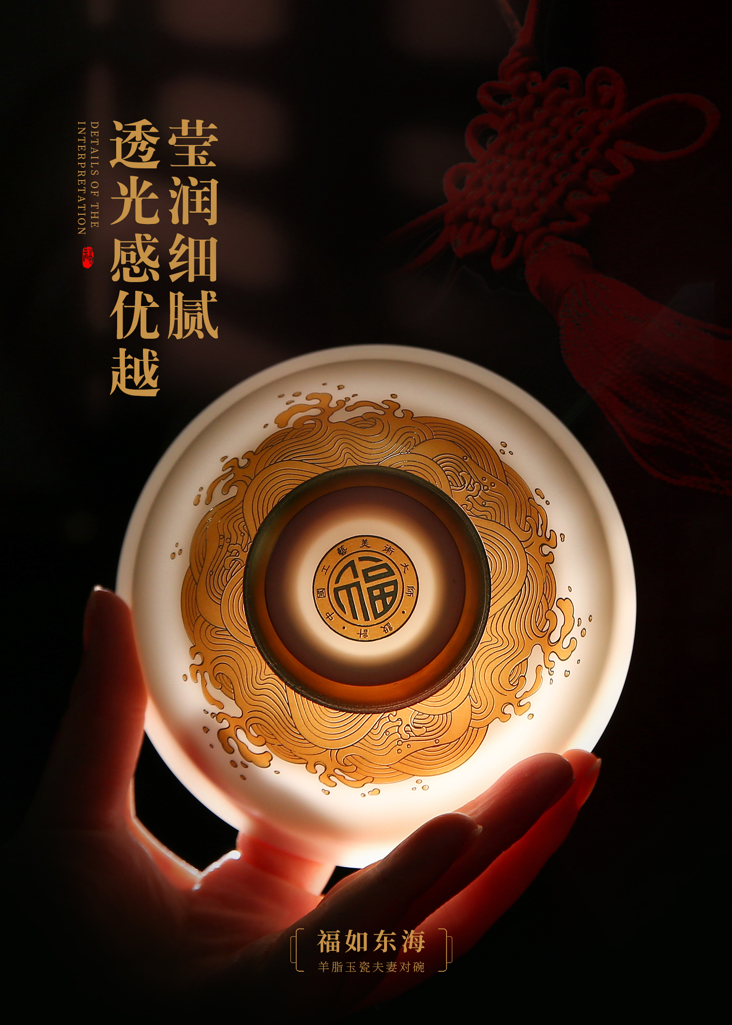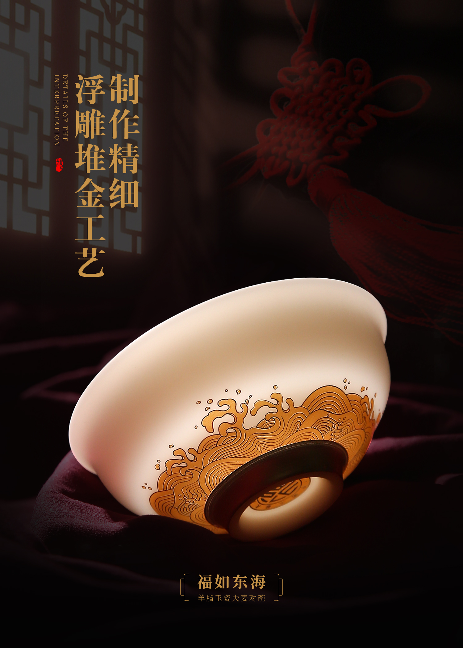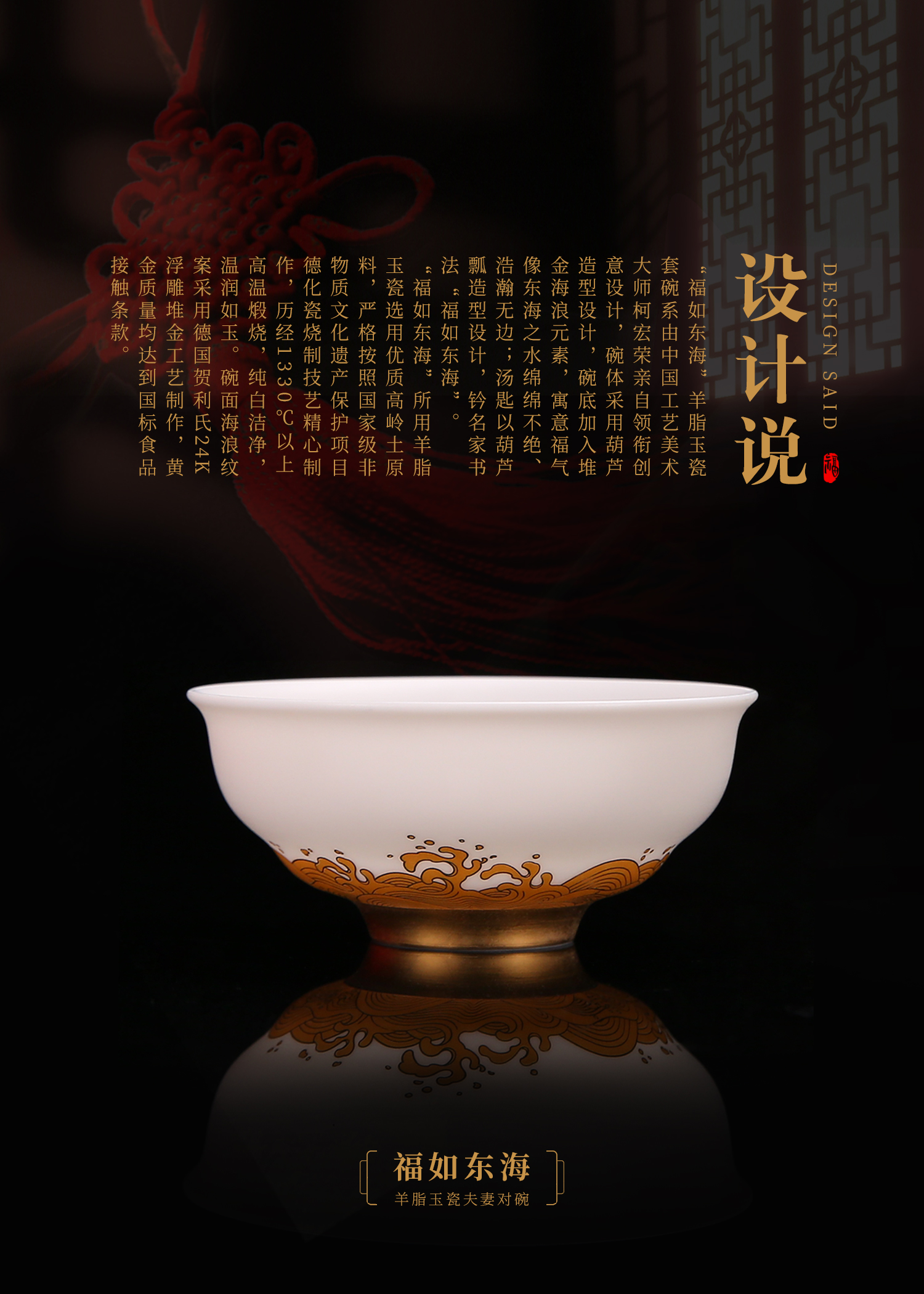 【白头偕老 永结同心】福如东海德化羊脂玉瓷碗,匠心制作 荧光透亮,瓷质如脂似玉 珍藏品鉴 送礼臻品