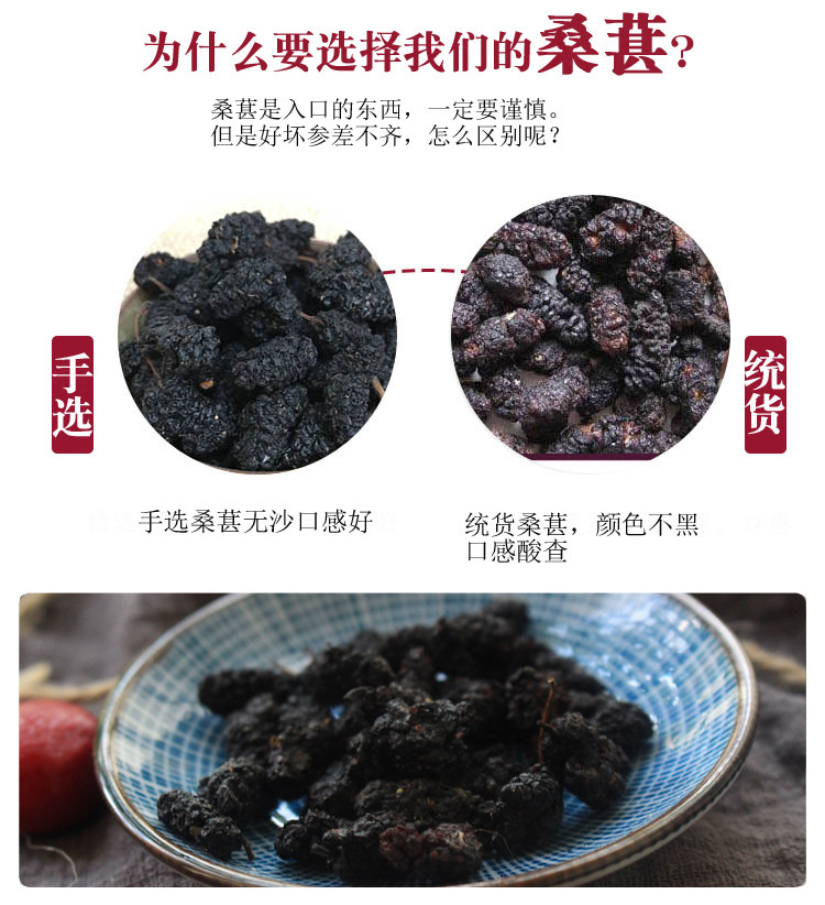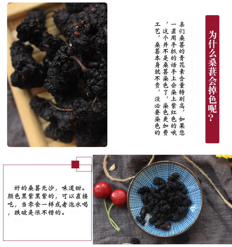 四川桑葚干250克 来自海拔2000米以上的攀西高原 的气候环境使其营养丰富、口感出众