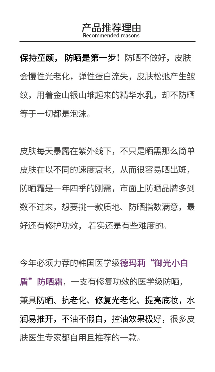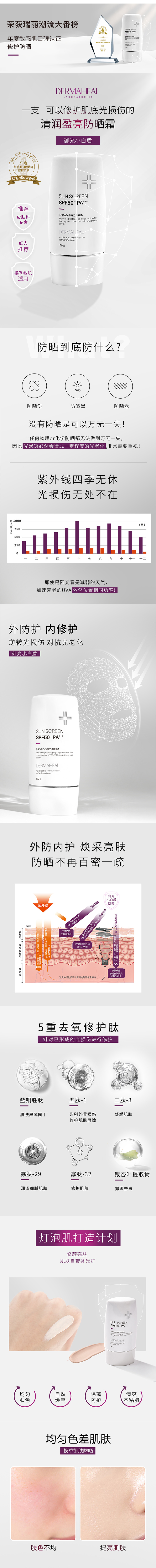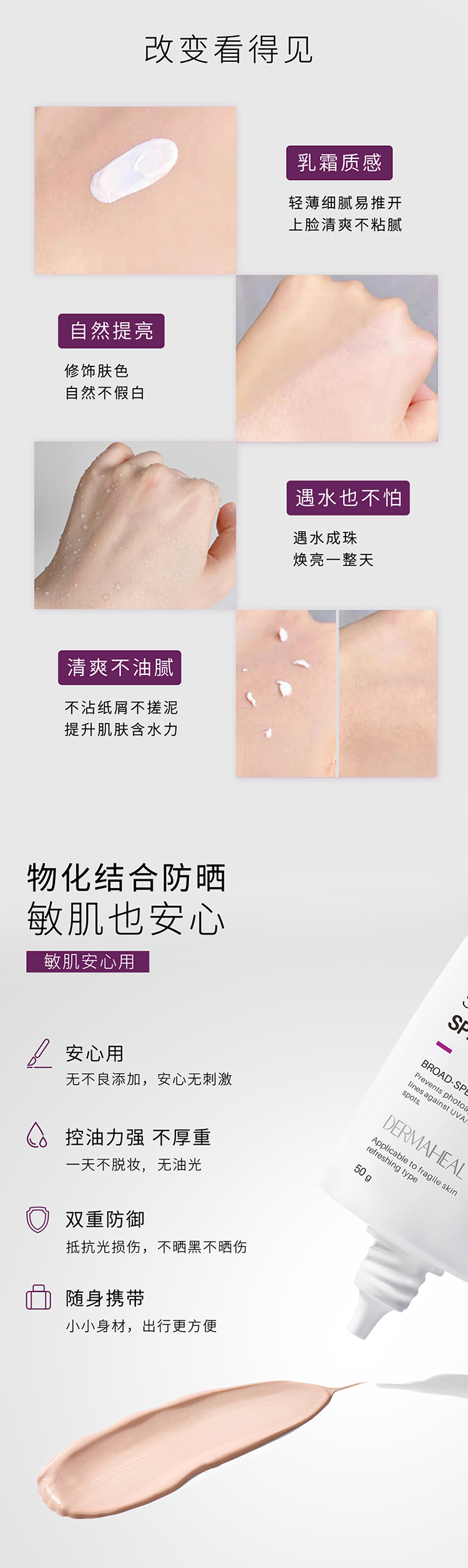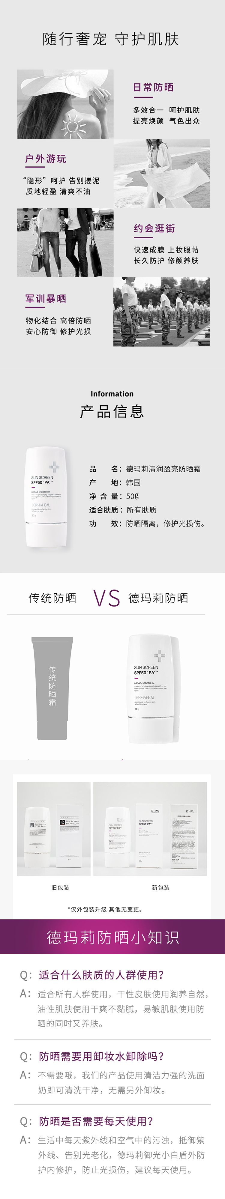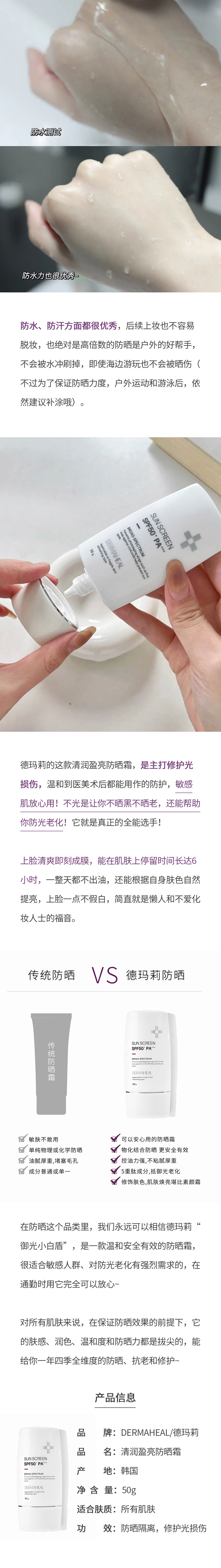 【3天左右发】德玛莉“御光小白盾”, 专为敏感肌打造的医美级防晒霜!外防护内修复,实现全方位抗老护肤!上脸自然提亮不假白,控油能力也很赞,皮肤专家都推荐自用!每支50g