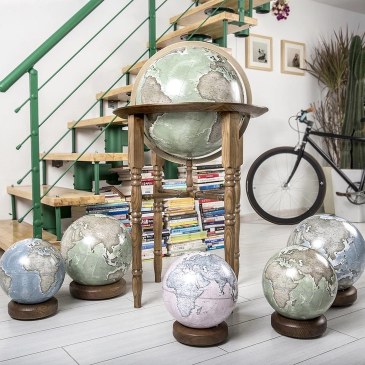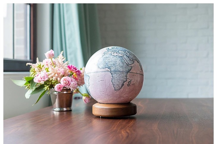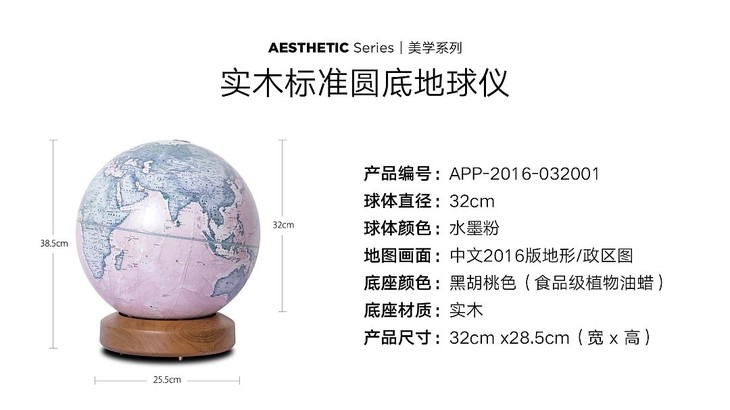 宏微出品的地球仪色彩,冰川蓝,灰湖绿,水墨粉,每一种都是设计师根据国际家居潮流而做。冰川蓝是格陵兰岛的颜色,初看通透其实深邃,且永远在不息的变幻中。绿色可以淡雅也可以明媚,当它恰如其分点缀于家居环境中,总能像带着花草清香的薰风,熨平你焦灼的视觉和紧绷的神经。粉色是清新自然与浪漫性感兼而有之的配色,也是女性魅力满载的体现。