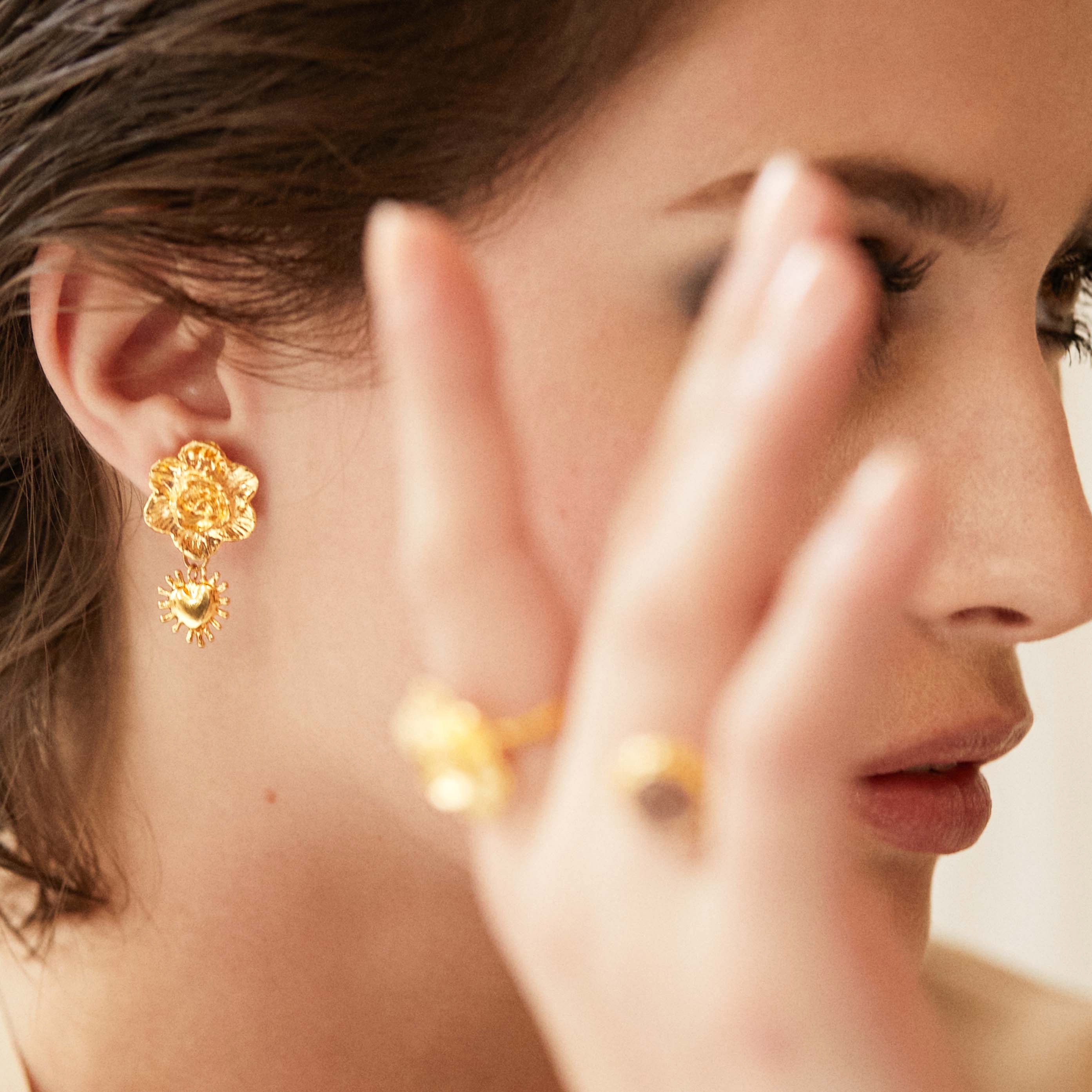 北京仓|Elise Tsikis-Flores-花朵 太阳爱心 金色复古耳环[美国设计师]