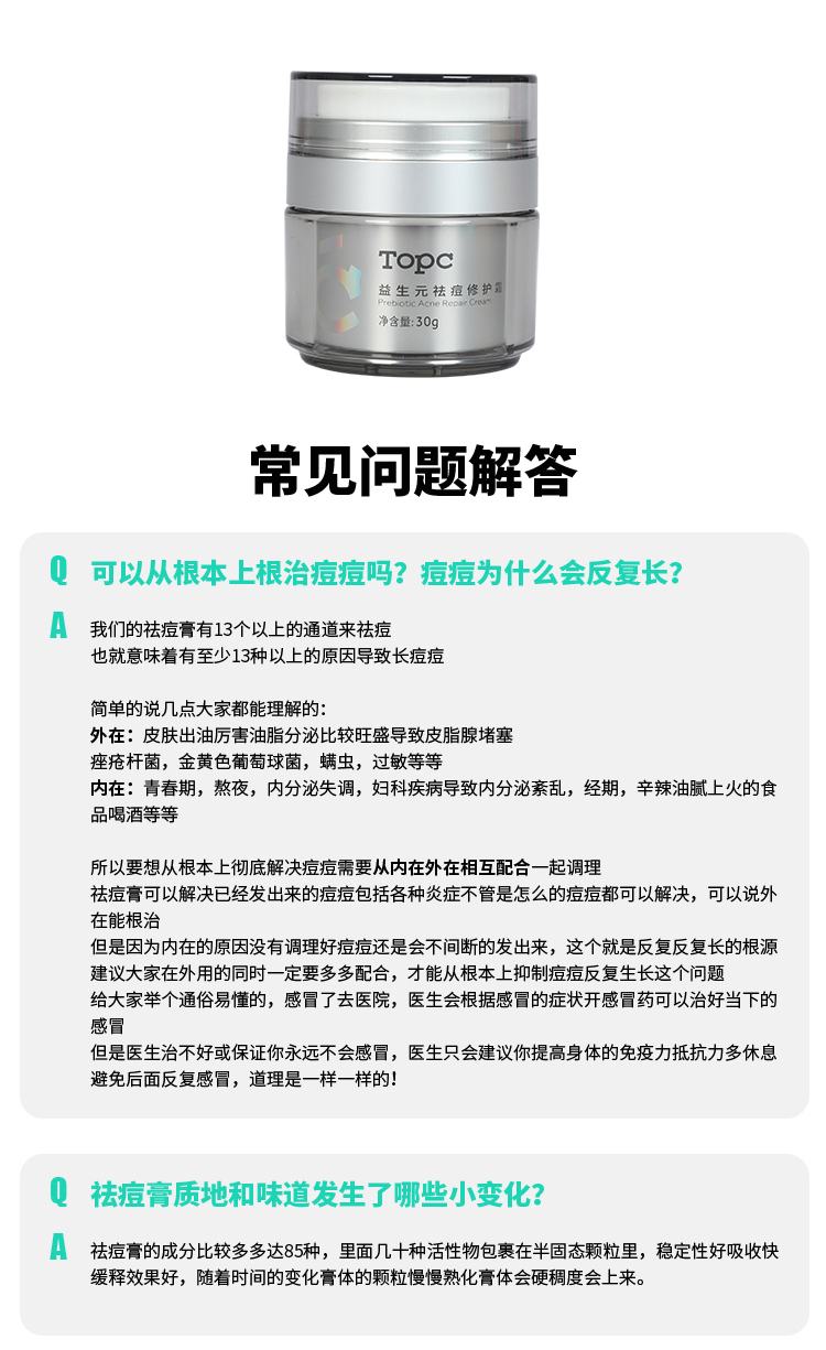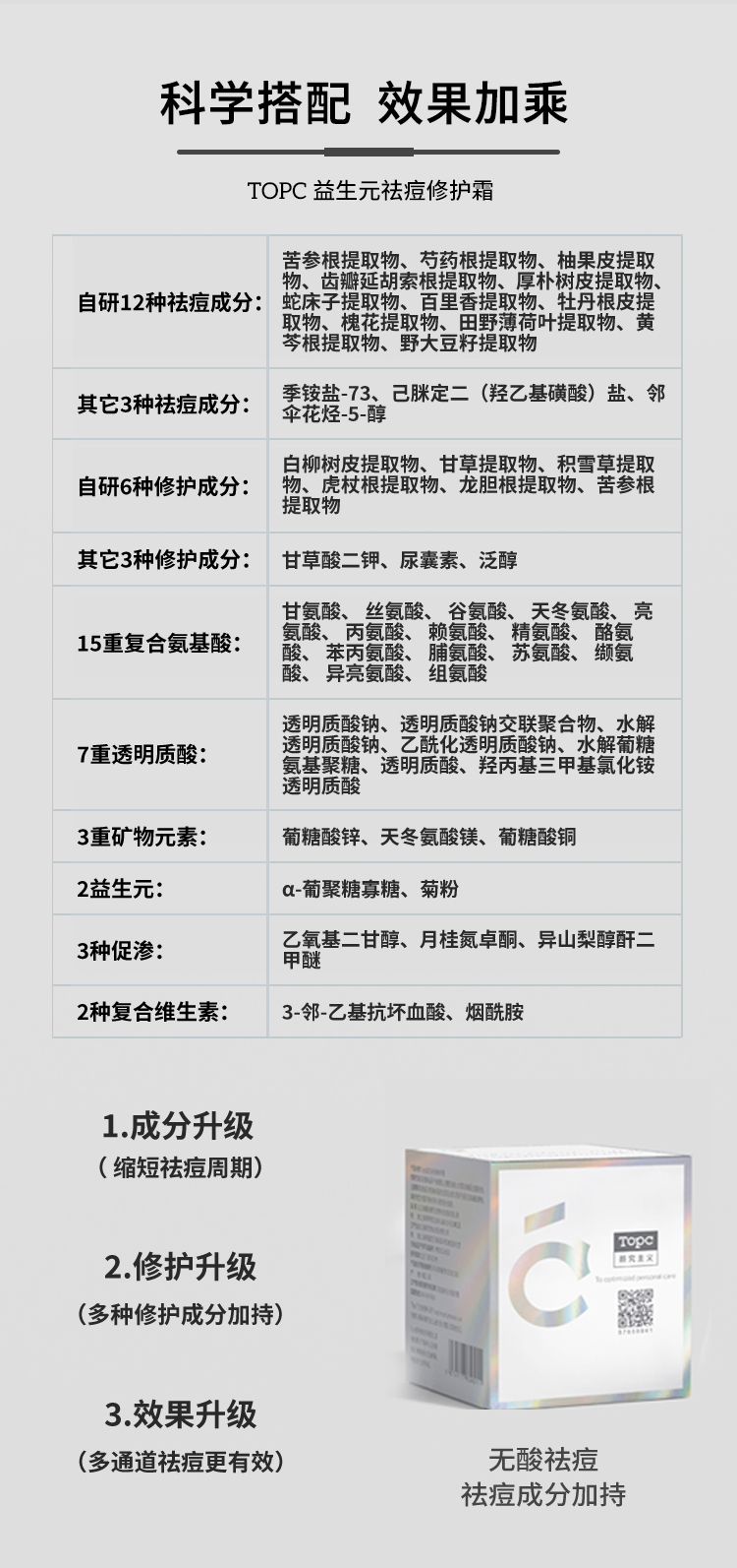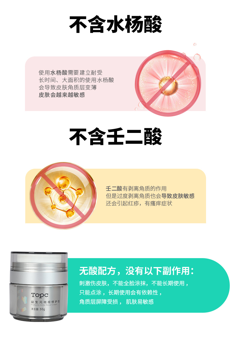 【TOPC益生元祛痘修护霜】祛痘膏历经17年研发可调理各种类型痘痘、粉刺 修护、调节肌肤微生态 舒缓红肿痒 所有肌肤可用 预防长痘 清洁毛孔垃圾 改善水油平衡 促进角质代谢 祛黑头 50g/罐