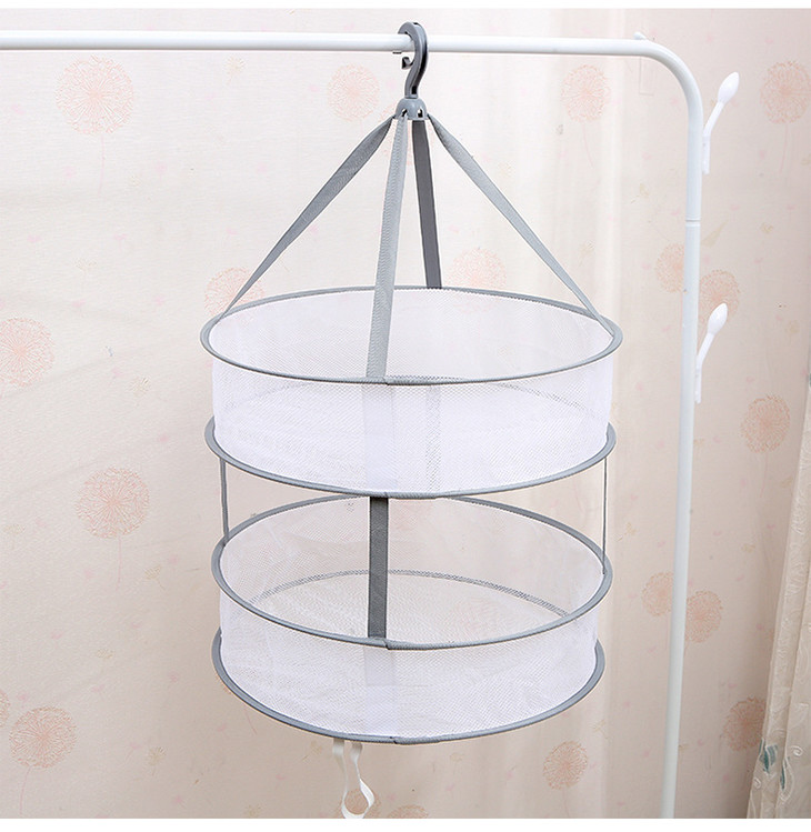 【居家】多功能包边晒衣篮双层折叠平铺晾衣网大号